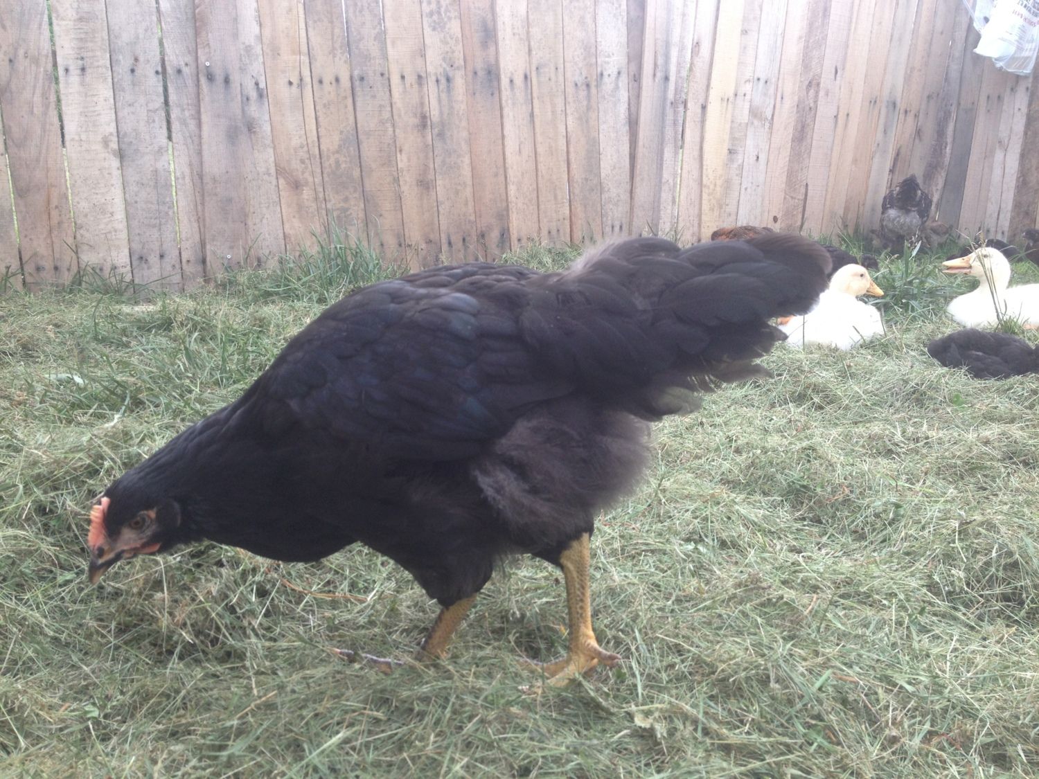 May 31, 2013 #17 Summersam87 In the Brooder 6 Years Joined Apr 16, 2013 Messages 13 Reaction score 2 Points 22 Location Southwestern Ontario, Canada Name: Big Bess Age: 3 Months Gender: Hen Breed: Black Sex Link Variety/Plumage: Black (with greenish sheen) Category: Hen Picture: