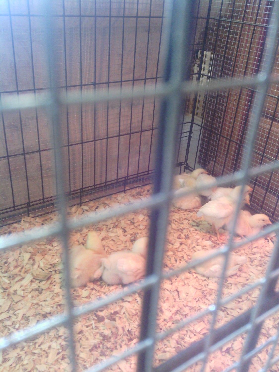 My husband and I decided to do meat birds as well as egg birds this year, so I went off to TSC for some Cornish Rocks. They only had eight and we wanted twelve, so I decided to get six Cornish Rock and six white Plymouth Rocks. I took them home and stuck them all together in their little brooder and thought...
