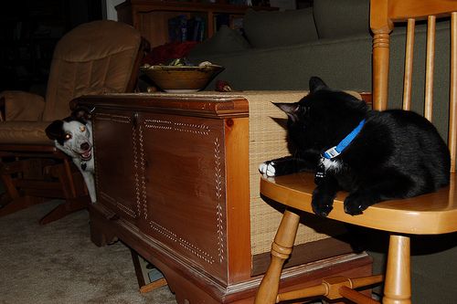 She's a creeper. This is her in my old house, herding the cat. The worst she'll do is herd them into a corner, and that's only if she's REALLY hyped up.