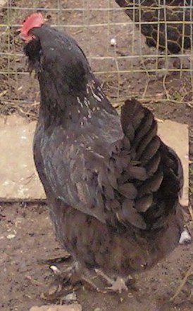 Breeding trio of Pet Quality Bantam Cochins(A black mottled roo and 2 black hens: $30.00 for the trio)
