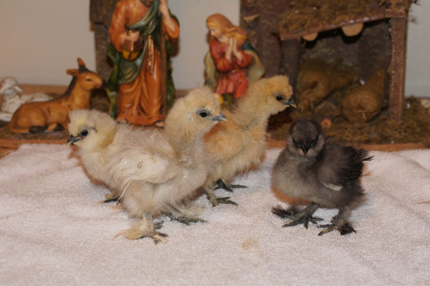 Yes, I was hoping my Heritage RIR's would be big enough to show at the April PNPA show, but judging by the time frame I got as to when they would arrive, it looks like I won't be able too. Right now, I'm really regreting not buying that SQ Silkie in Octobor because I'm only going to have 1 bird to show in April.My wife will probably wait to name them until we know who is boy or girl. She will likely go with a Shakespeare theme though as she is a drama girl. The only 2 we could show are the Partridge and Blue(recognized colors). The Paint and Porcelain are colors in development, but I liked them better than White or Buff(which I could have gotten). The Paint still has a little pink on the toes which would DQ it and one foot only has 4 toes. We will have to see about showing the other 2. That takes a lot of extra care and don't know if we will have that kind of time. Depending on how much we like them(I am sure we will) I may start breeding them and continue work on the non approved colors.