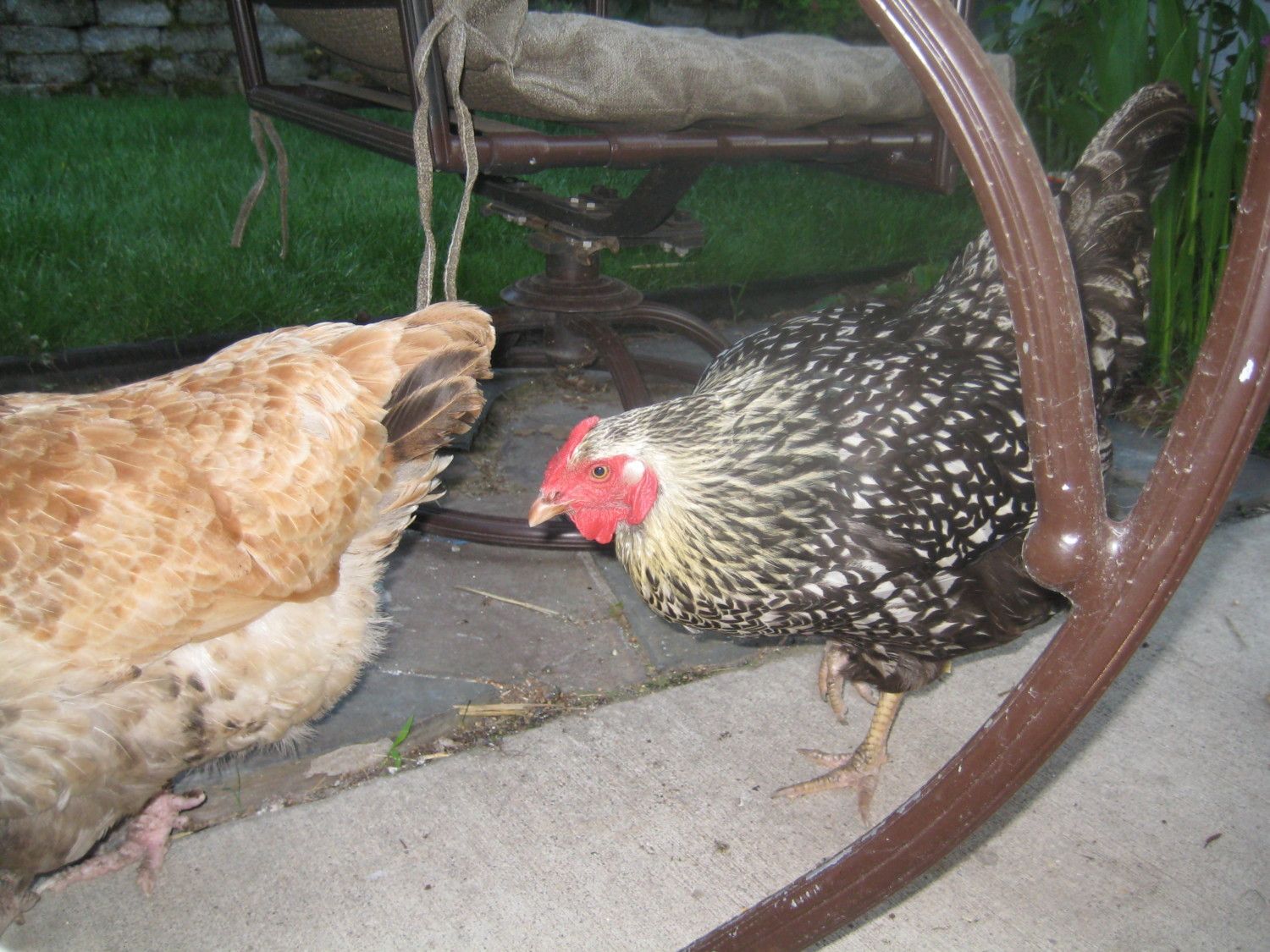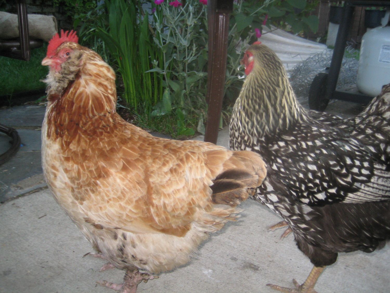 They're both mutts of indeterminate origins with a "free chicken" on craigslist history, then to a friend I know, and then to me.