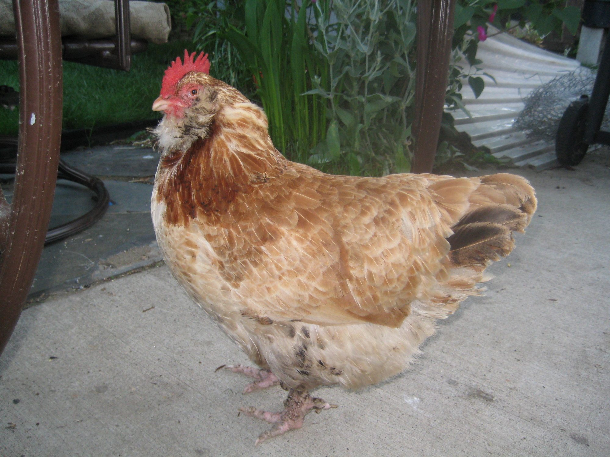 Gracie - is a favorelles with serious breed disqualification issues ( she's super cute! ) - No clue how old she is - she still lays eggs