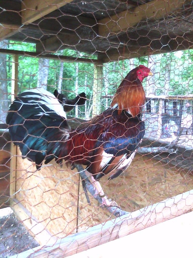 Nate, those Sumatras don't look bad at all, but that Thai ain't even close. Aside from the heavy feathering and wattles, the white ears would suggest something else in his breeding besides Sumatra.........PopHey fellow chicken folk. I just started reading the thread. I want to comment on Ideal's Black Thais. Below is a pic of the biggest chick sent at about 10 months old, Feb 2011. At the same age I had some of Cackle's beautiful Black Sumatras. Of which I still have. I think the Thais have Sumatra blood in them. I have pics of his multiple knots. I sold the Thais last year. He was a big thick beautiful bird. lots of feathering.