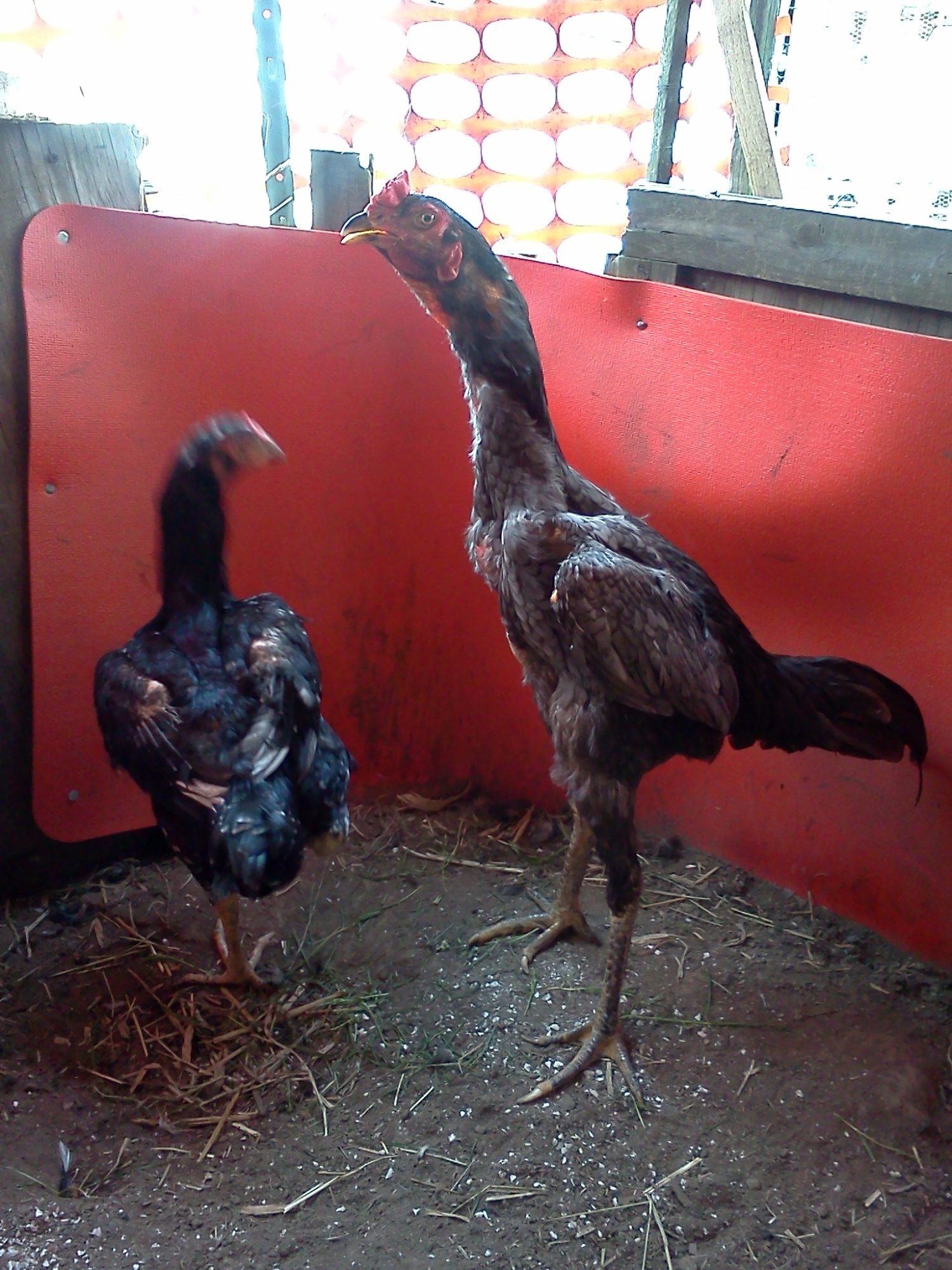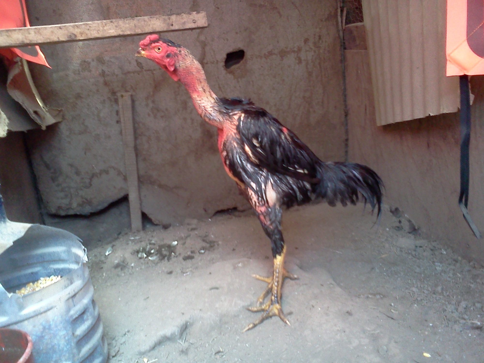 below: My brother big red thai, This is what happen when you have hens who like eating feather.lol.
