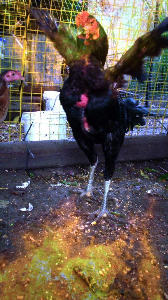 Yeah Paolo, I was worried that he had a crooked neck. Turns out he was just spook out from the long ride inside a box. I will try to apply some tumeric on him to see how it works. My uncle use to do it back home. The spangle and one of the blue hen eggs just hatch today. He or she is all wet today, will fluff up by tomorrow. I will post some pics as they grow older.