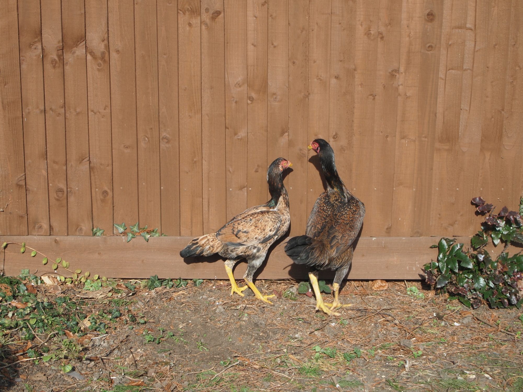 Hi, I was just wondering if anyone could identify the species of these chickens and could confirm whether they're both females. They just randomly appeared in my back garden. Thanks :)