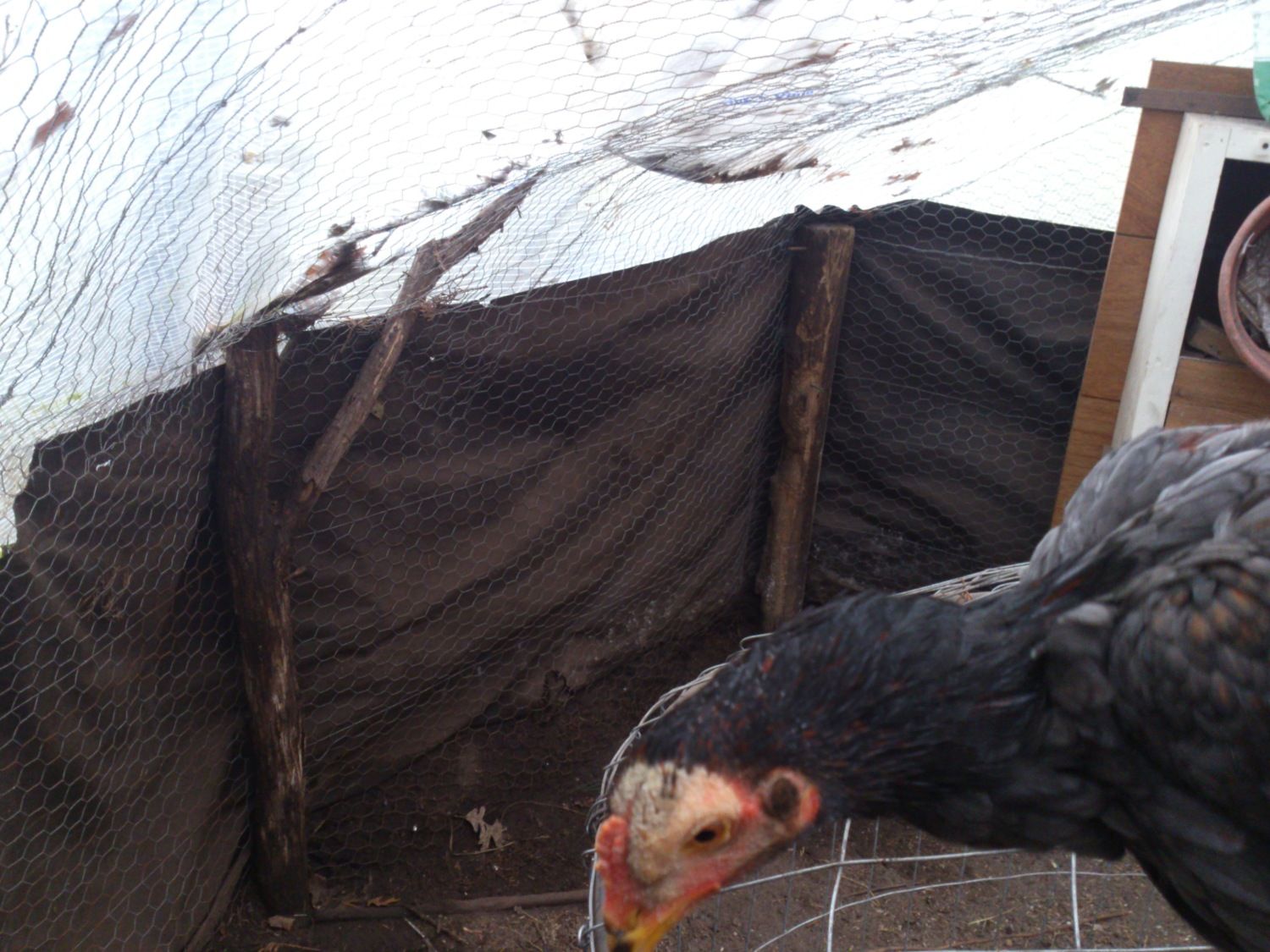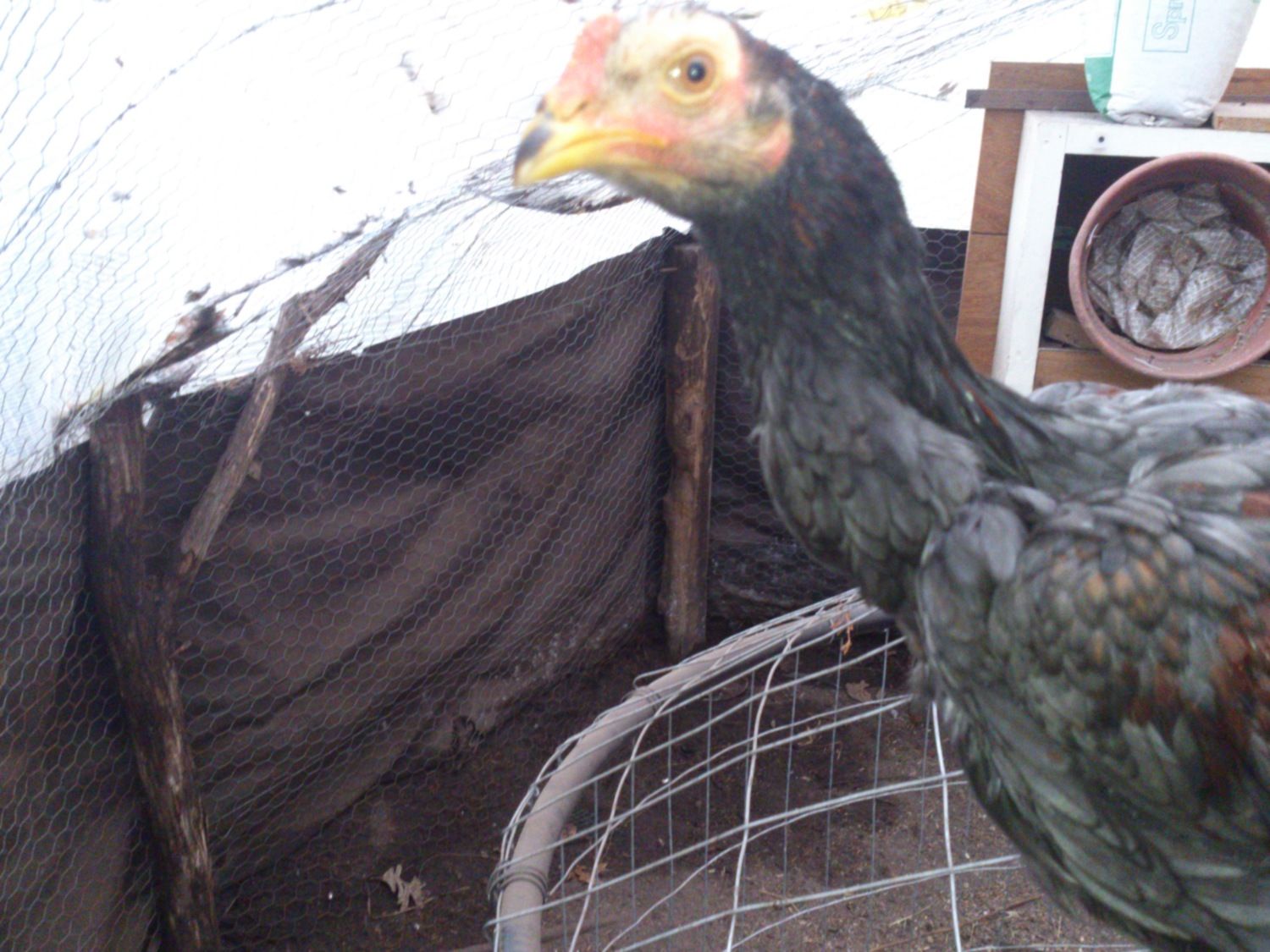 never thunked of that!It could also be him putting his head through the wire if the holes are just big enough. Wire will rub feathers off fast.