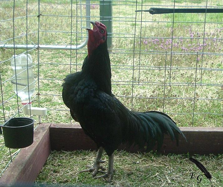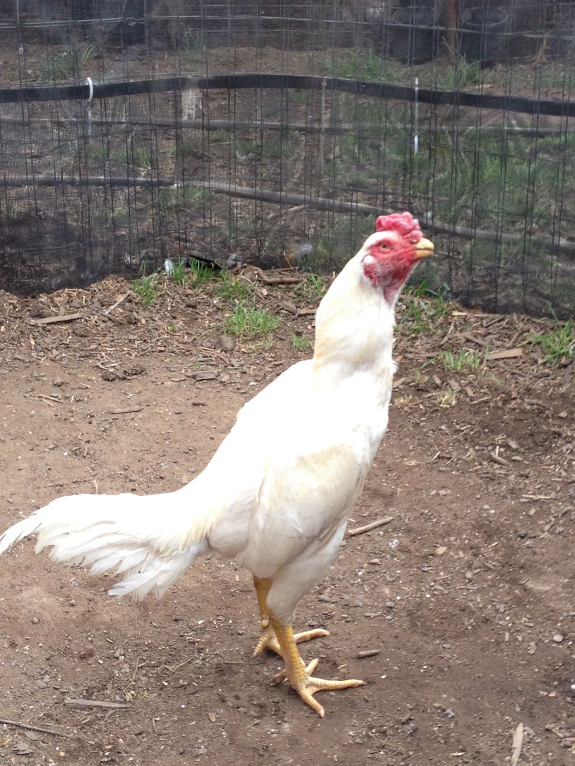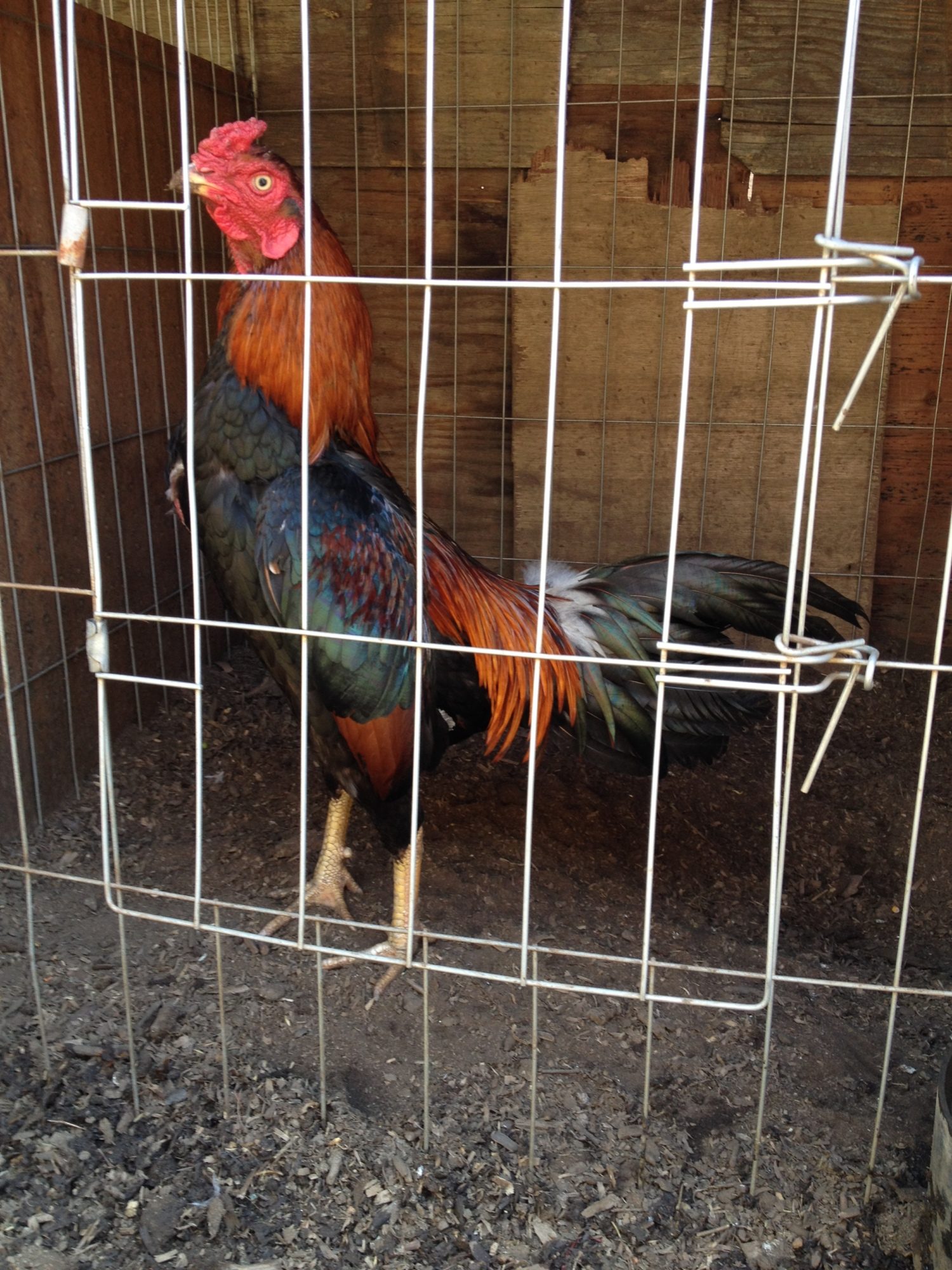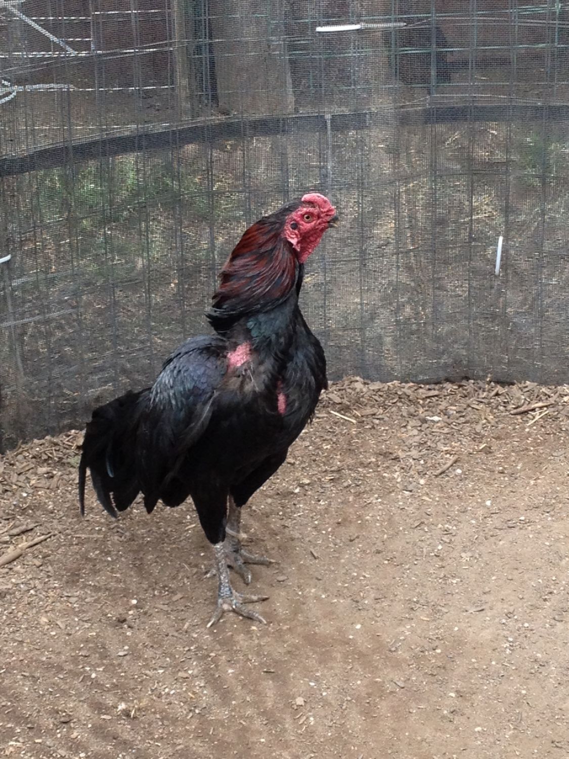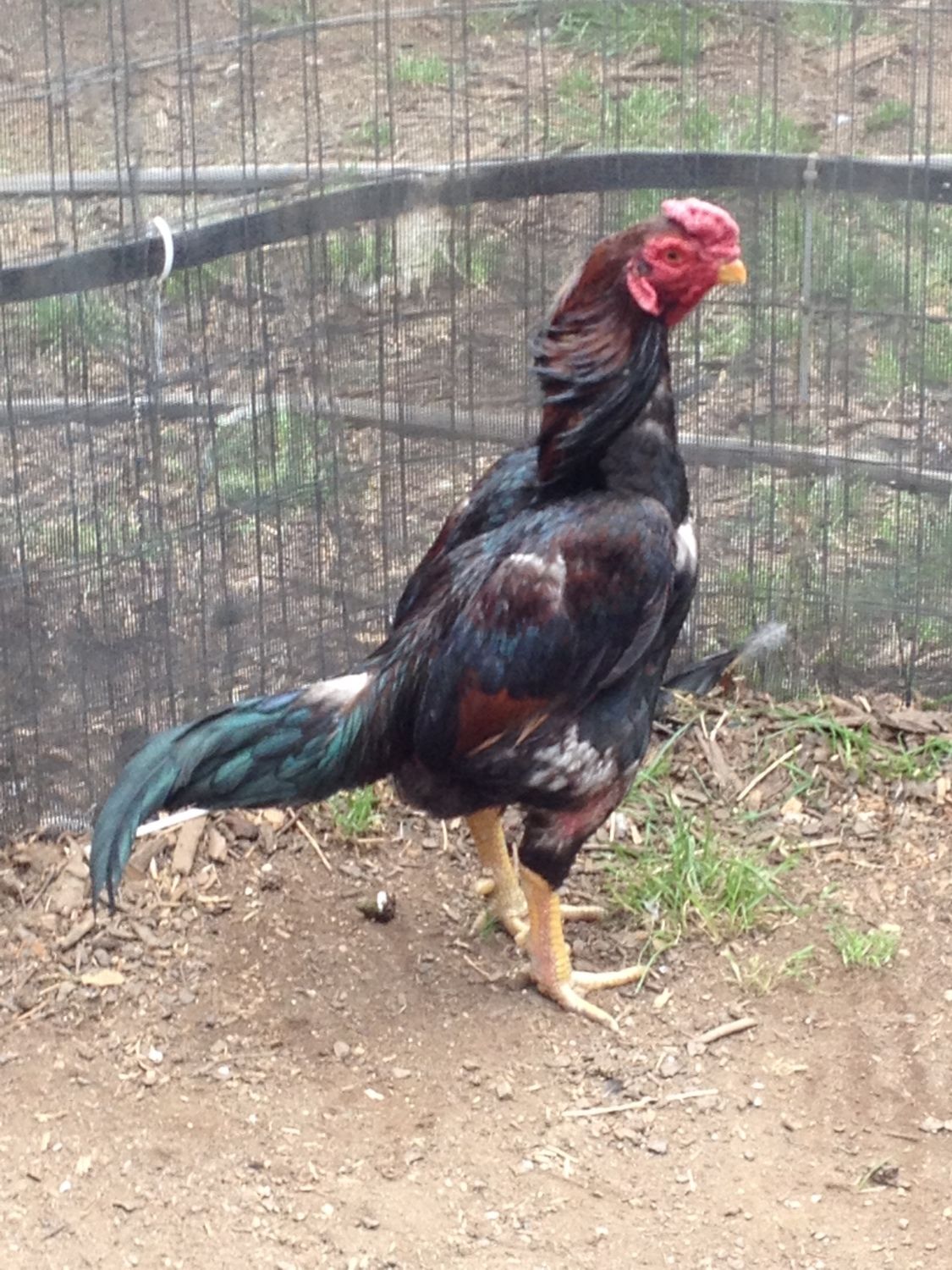 I went to Redding (3 hours East from me) and picked a huge 'Shamo' that was not pure at all. It was really big but didn't have proper Shamo body and tail like American Games. I got it cause it was real big, 12#. He look like a real big American / Oriental cross. You can't see any more traces of his tail or body in my birds now.