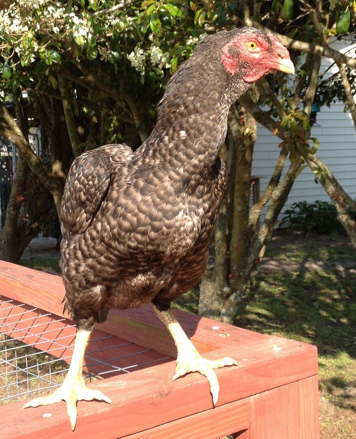 Here is a Black Thai. He still in first feather but weighing 10:02 lbs already. He slept on the roost and had a cut on his chest. Now I am treating this infected area and put him in a small coop so he sleeps on the ground. It works and the cut on the chest is getting better.