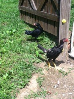 My new pair of Sumatra/Asil. they are super agressive birds towards other birds but sweet people. the person i bought them from said they will kill eachother if paired up, i didnt believe him and sure enough, the cockerel tore a chunk of flesh off the pullets head.