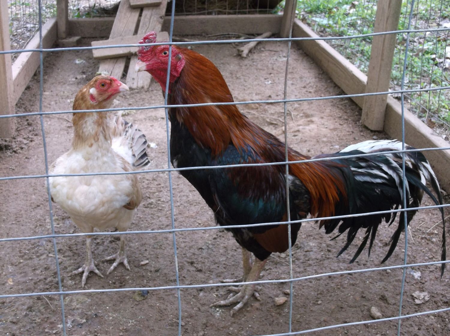 The little black stag is smart. I had to pen my roosters on cords, because he'd run up from behind, and attack the older roosters then stand at the perimeter and fight them. The red stag is a lot bigger, but more mellow, and I haven't seen him go out of his way to instigate a fight, unless it's over a hen, but he holds his own when he does.