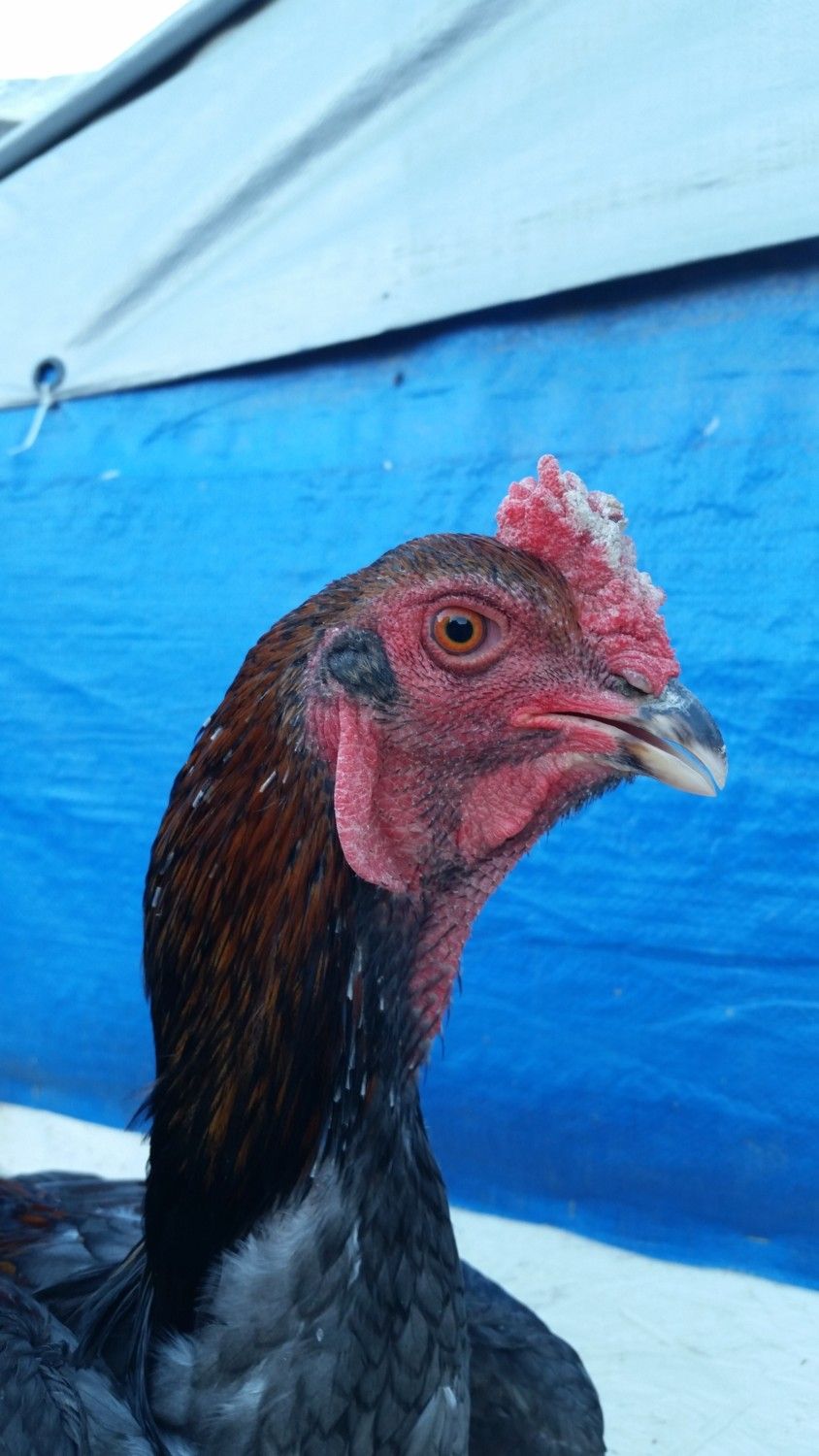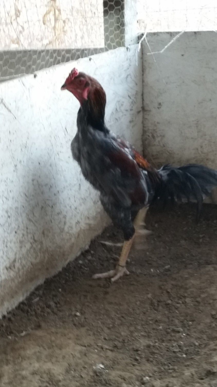 Not sure what these are. What do you guys think, Thai or Malay? The rooster is tall enough he can look down into my masons wheelbarrow and the pullets aren't to much shorter.