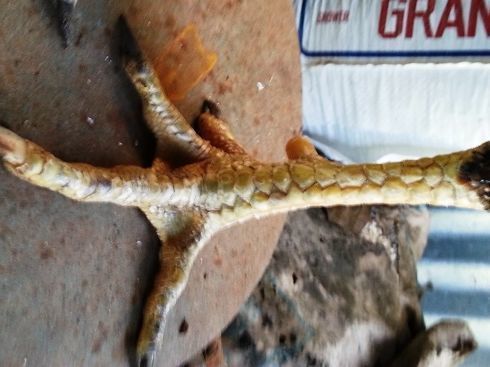 Rooster 1: Black Red GaNoi, special White front toe, estimated 8:02 lb.