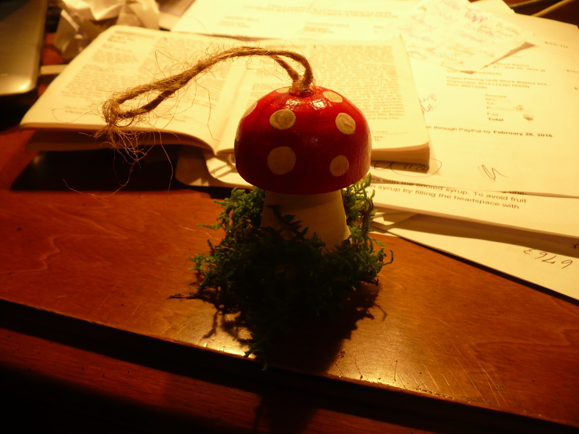 so exactly how long it has been on my front porch I really couldn't tell you, sometimes I let my cat in the front door when the cat who doesn't like her stalks her at the back and yep I saw it. So wildmtnhoney I just love my mushroom and the story you sent with it. I put your screen name and the year on the bottom.