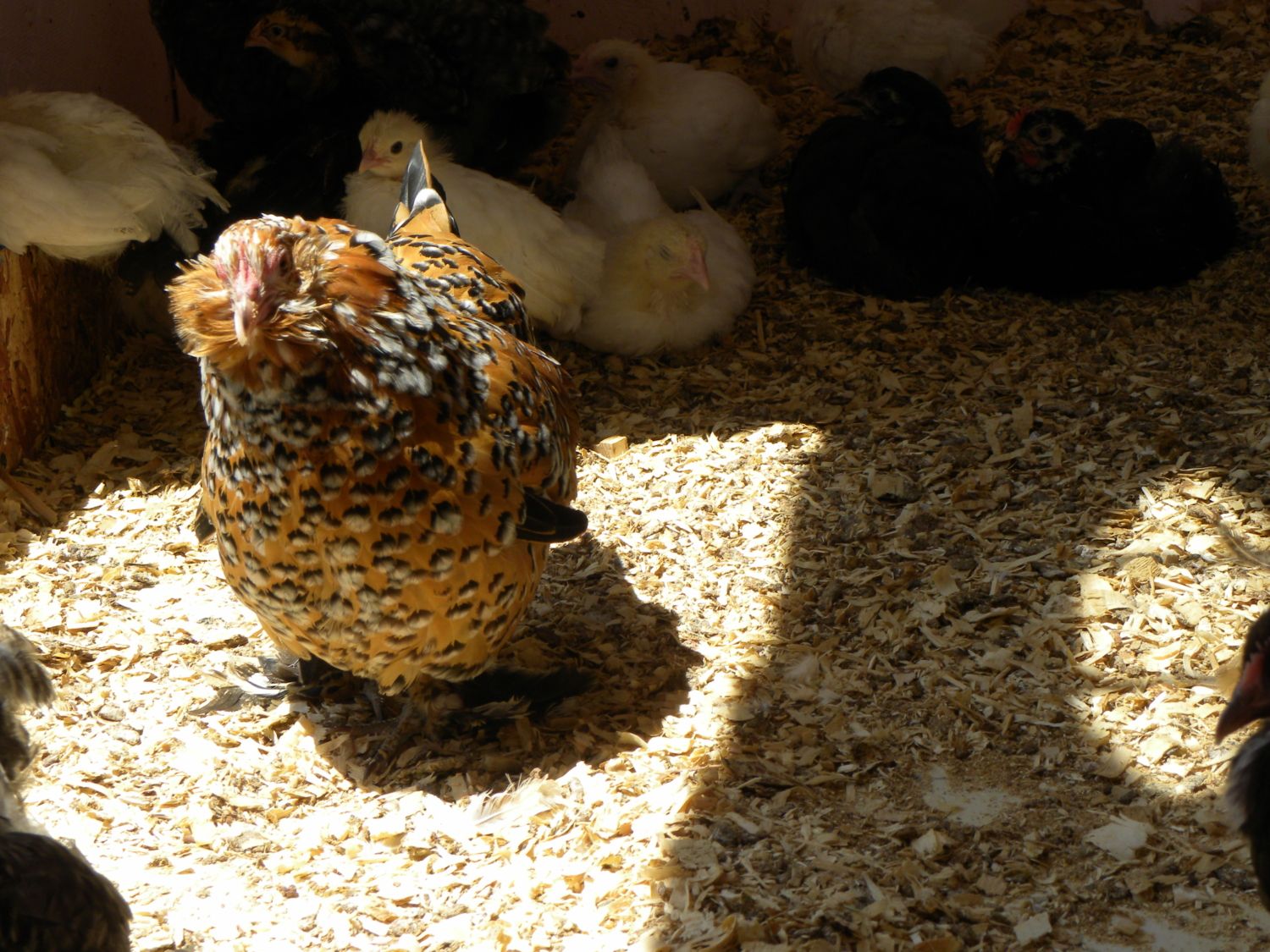 Hurley, a sweet, year old, Mille Fleur hen