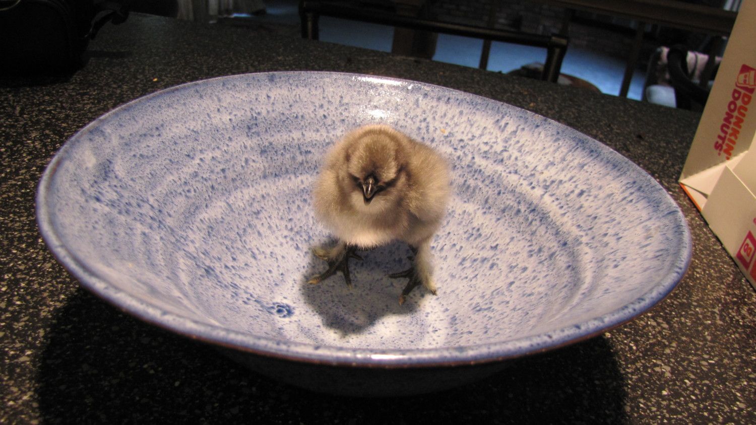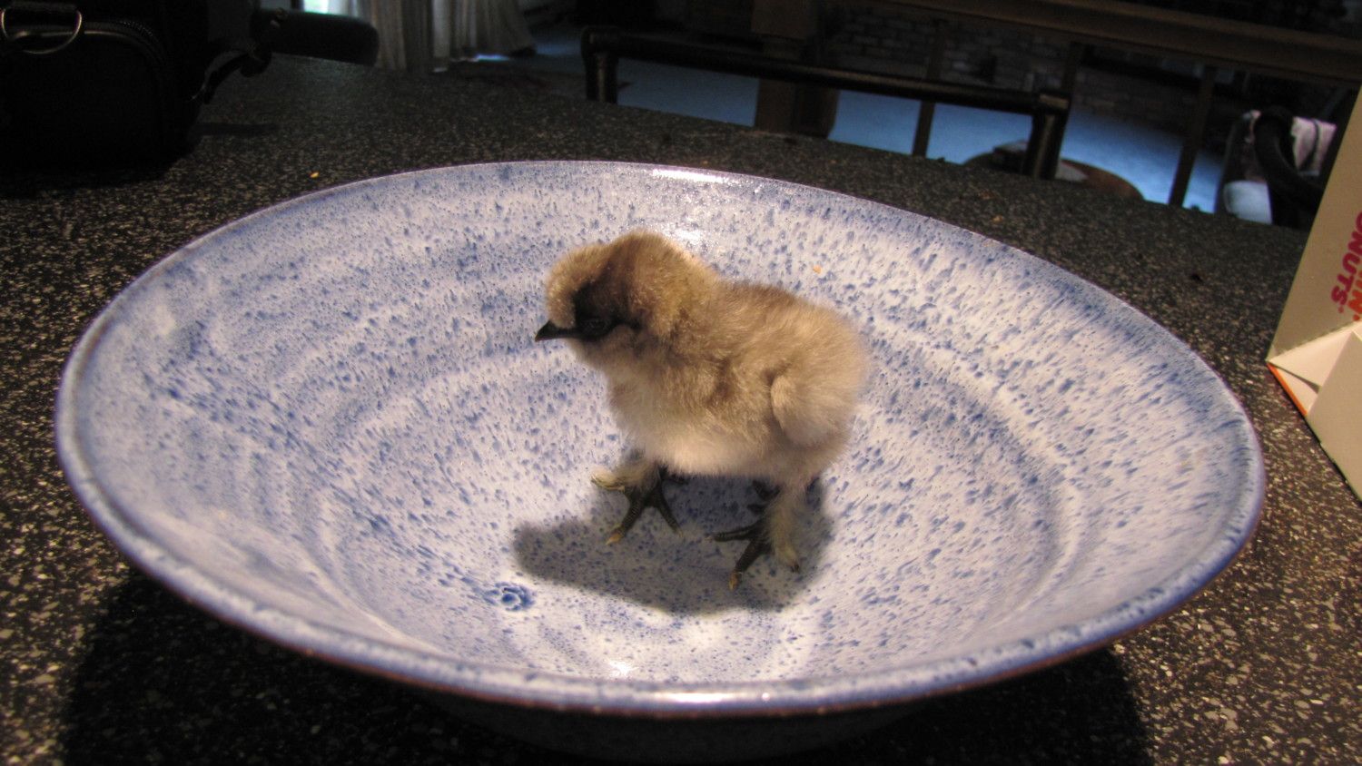 Silkie Color:Blue Age:2 weeks Name:sky First pic 2 weeks Second pic 4 days old