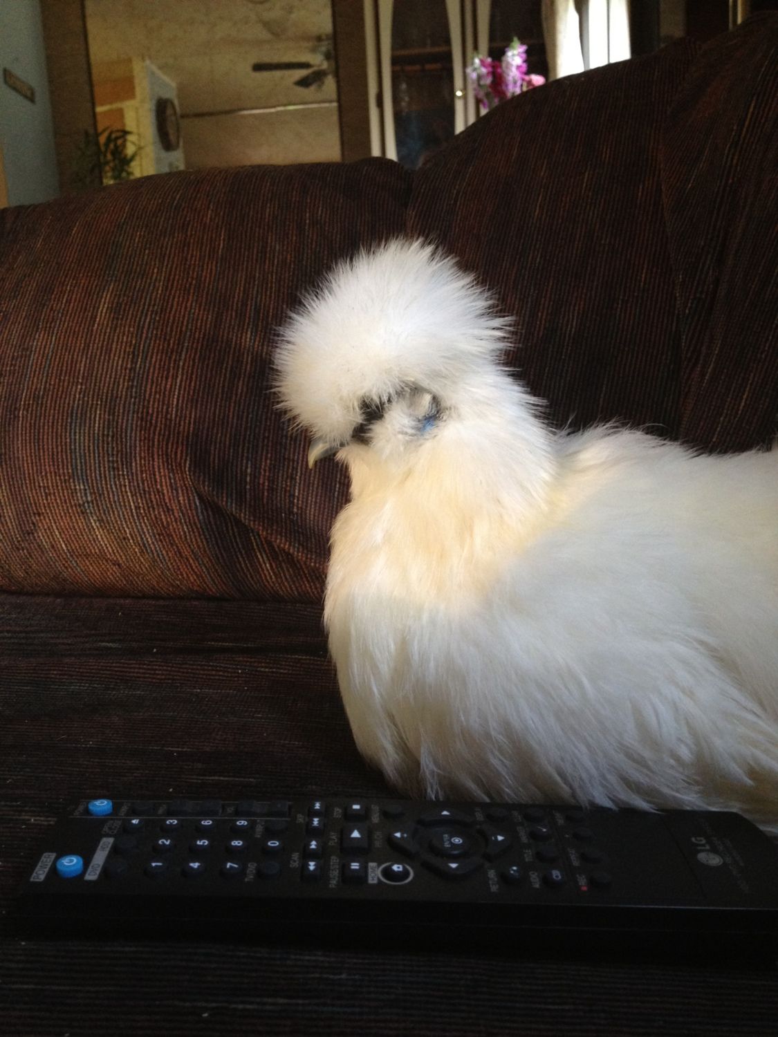 This is my very spoiled boy-Benjamin! He is a Pure White Silkie and he will be one year in August. He is very loving and very curious! No matter how the contest ends, he will always be the winner in my heart! (Date on pict. wrong).