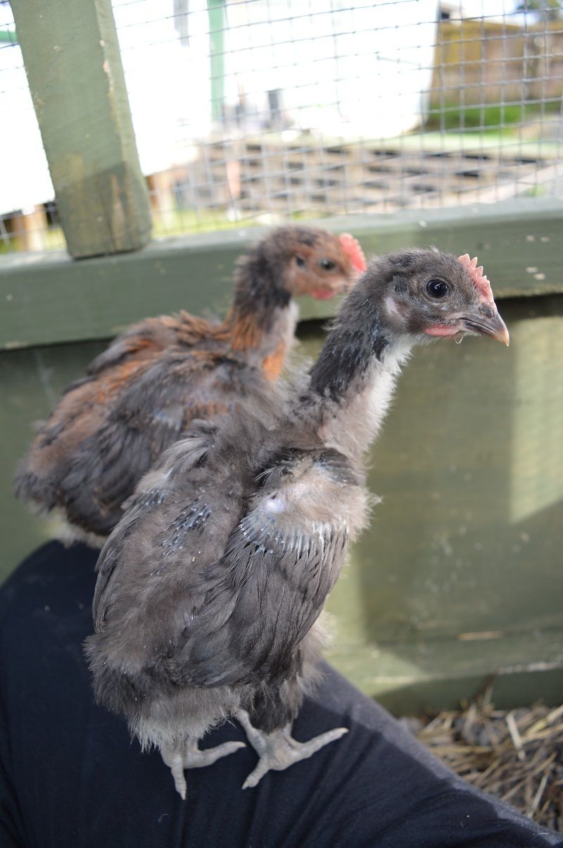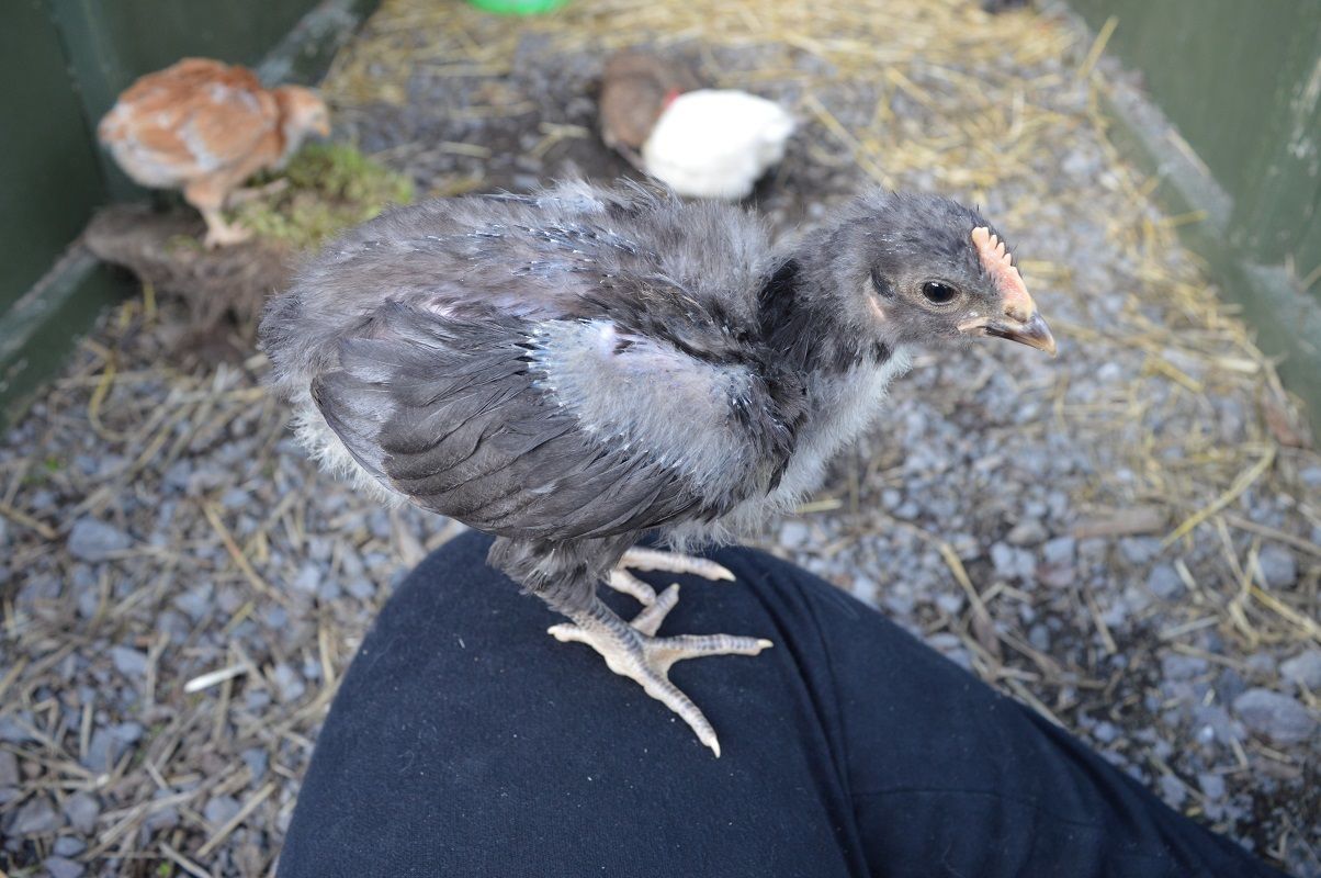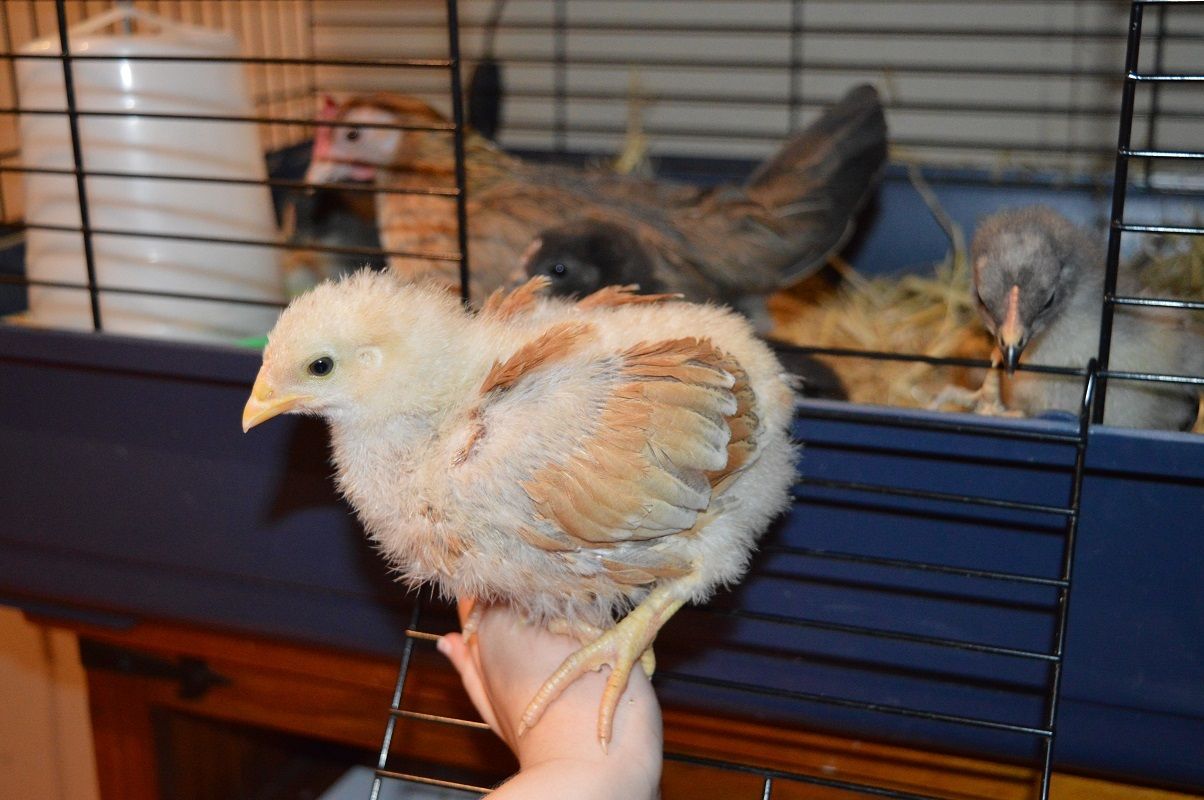 We started out with 6 that we gave to my broody bantam who loves being a mother. At 3 weeks we went and got 3 more from the breeder as all our blues sprouted combs and wattles.