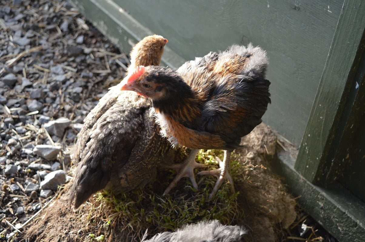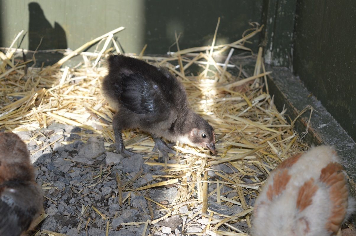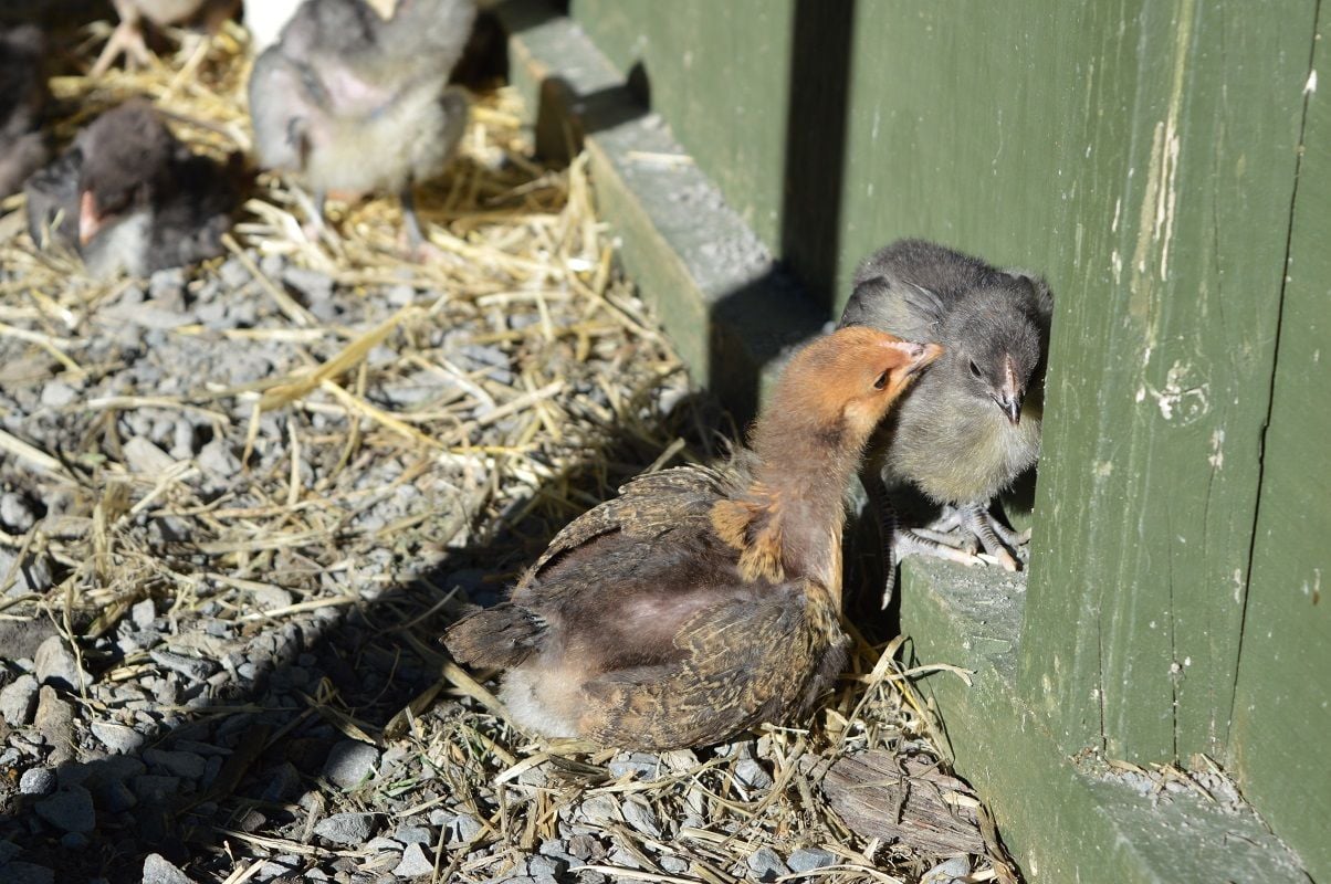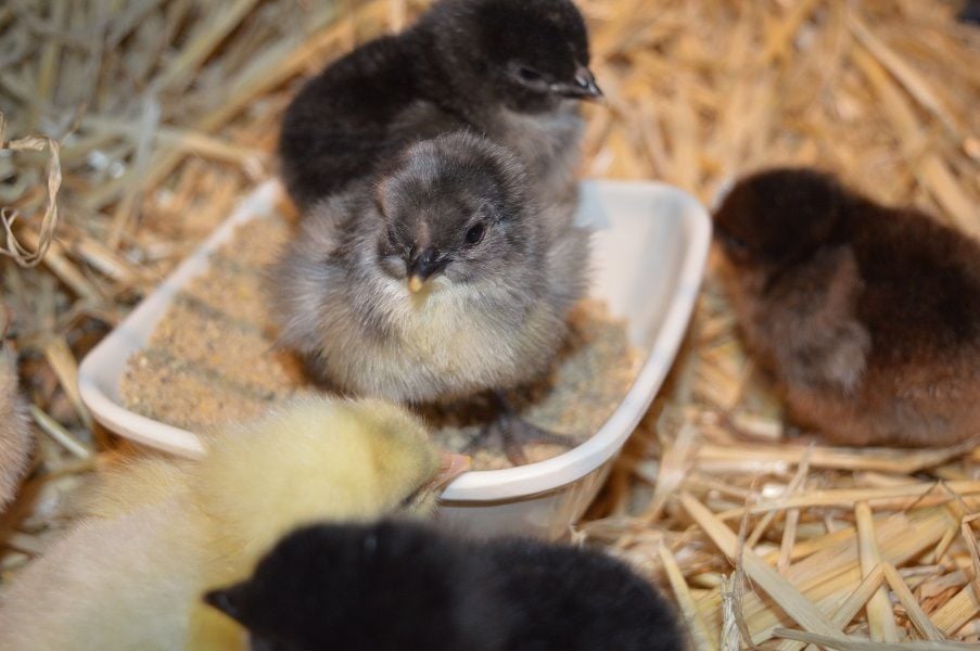 We started out with 6 that we gave to my broody bantam who loves being a mother. At 3 weeks we went and got 3 more from the breeder as all our blues sprouted combs and wattles.