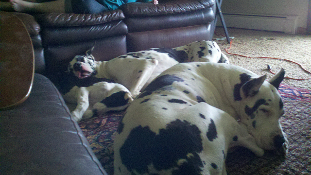 Rebekah, You have some gorgeous Danes!!! I love my Sadie girl! She is the sweetest dog on the earth!!! No temperment like a Dane!!!
