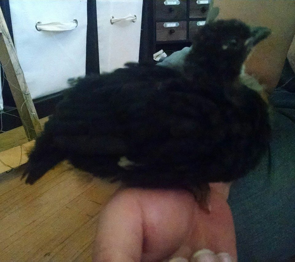 Well, I didn't know it was a guinea egg. I was collecting eggs to put in the incubator, egg turner and found some on the ground outside. I thought it was unusual but put them in the incubator with the others. My chickens and rooster are rhode island reds but two black chicks hatched, only one survived though. This is our first year with guineas and I didn't even realize this was possible. So far his feathers are coming in nicely everywhere but his head and neck, which still has fuzz. It looks to be thinning but I still don't know what is going to happen at this point. I've looked up so many photos for the hybrids and they all seem so different.