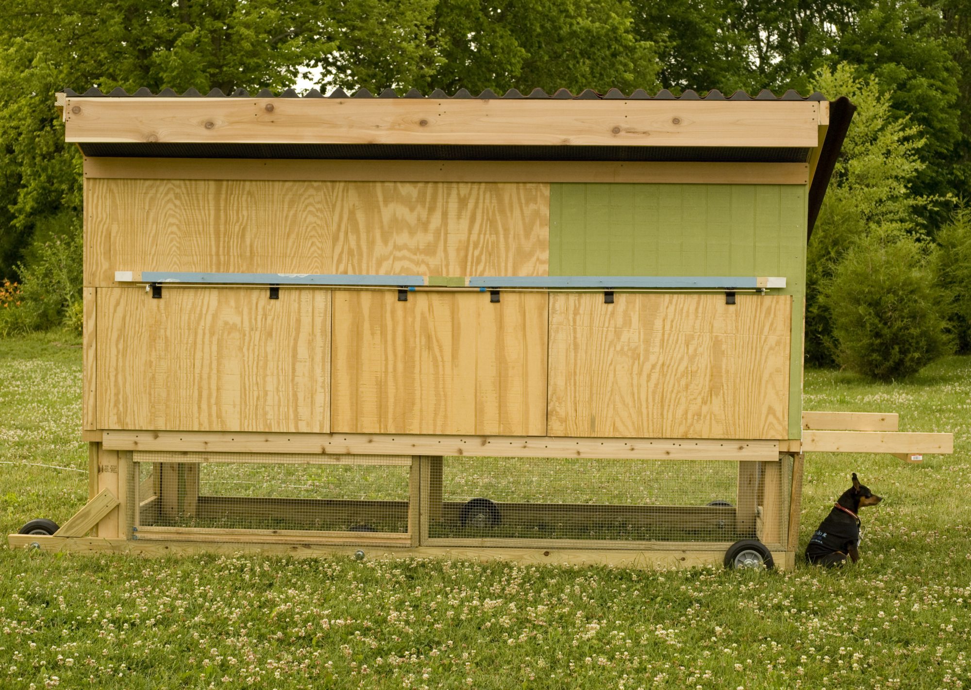 Our coop was supposed to be a chicken tractor, but my husband got a little carried away--- I dubbed it the Chicken Tank, because it is so big and heavy! It does roll nicely though! We are still working on it, but I couldn't contain my excitement that the girls are actually sleeping in it and it had it's first run across the grass today! We are going to double the wheels to 12, as the weight is still too much for the current 6 wheels. I have lots of cosmetics to work on! Trim work and a few hiccups to be fixed. The green panel is the color that the coop will be and I will be adding contrasting trim accents.