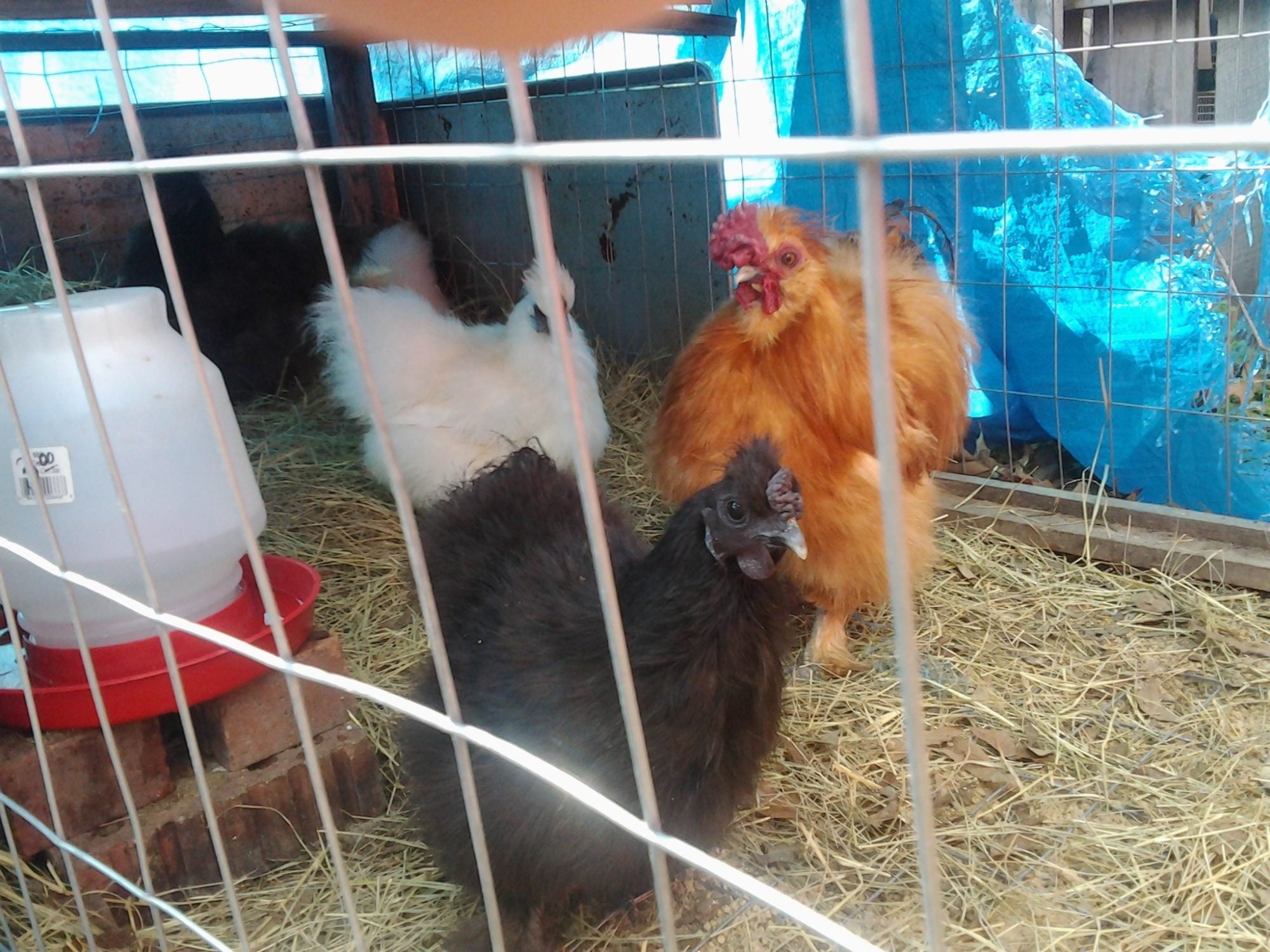 We have 5 adult silkies, Mr big brown is the roo, a partridge with what appears to be a cancerous, mutated ugly comb. 2 white hens, a black hen, and a blue/black splash hen. 3 of them are laying, but I don't know which 3. We have over a dozen eggs so far, but these will be the first fresh eggs the family has ever had, and so far no one has pony'd up to be the one to try the first one.