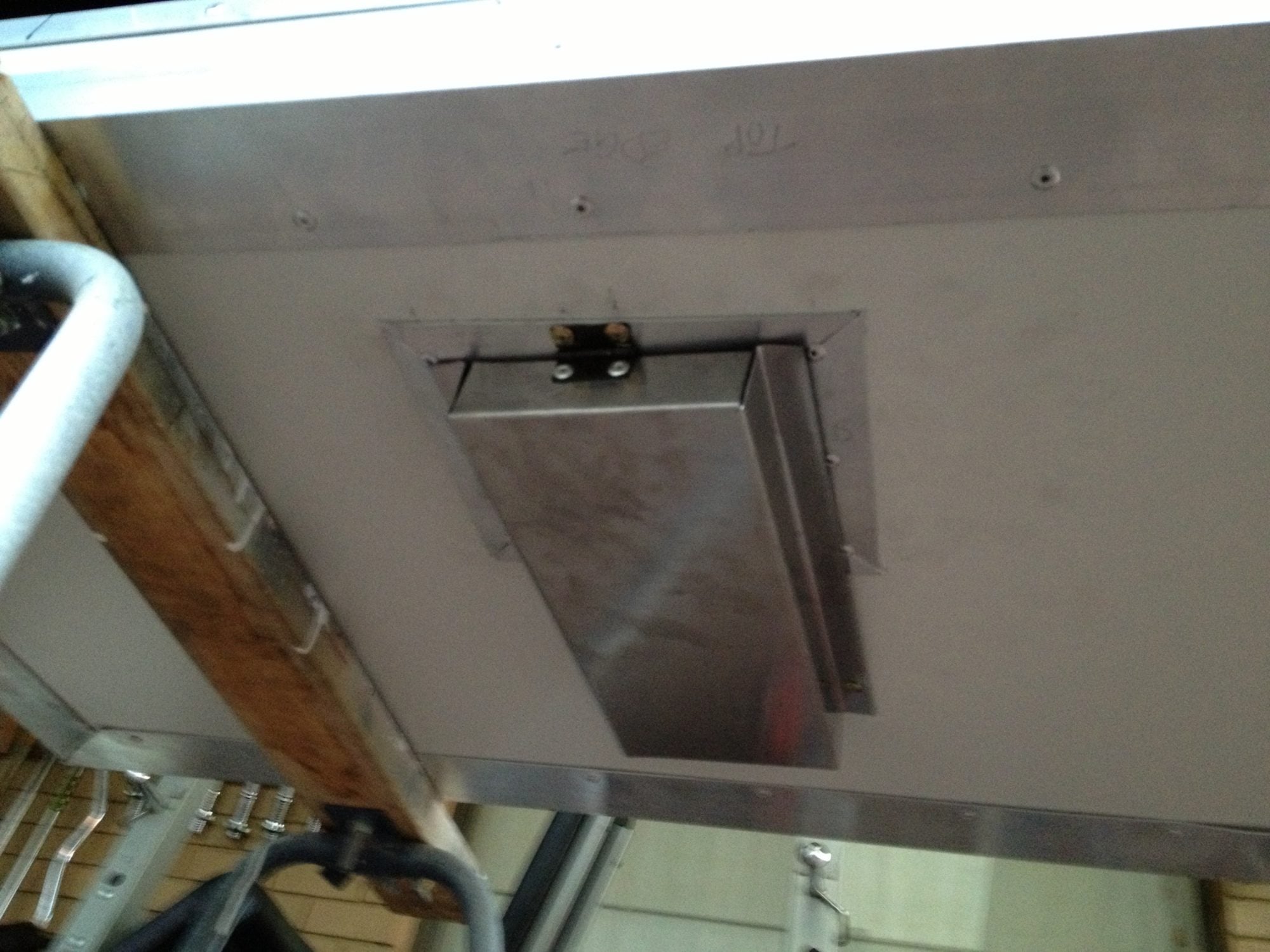 Added the mesh flap, sit flush with the floor, has a single hinge on it.