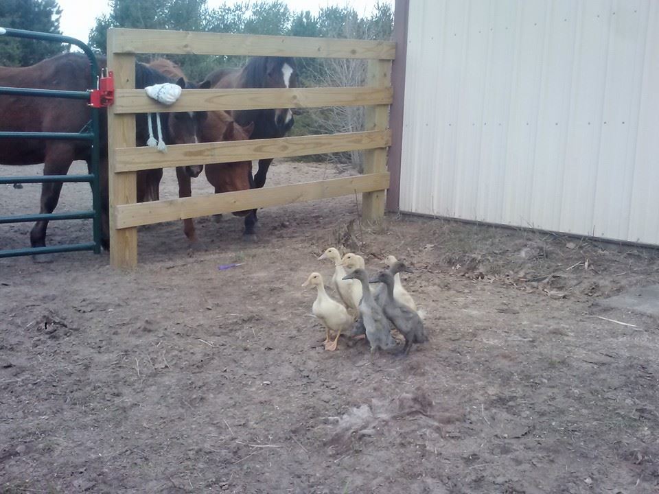 They met the horses, horses met them....messed around in the yard a bit and then we went back to the brooder....very exciting times! Suppose to storm the rest of the week