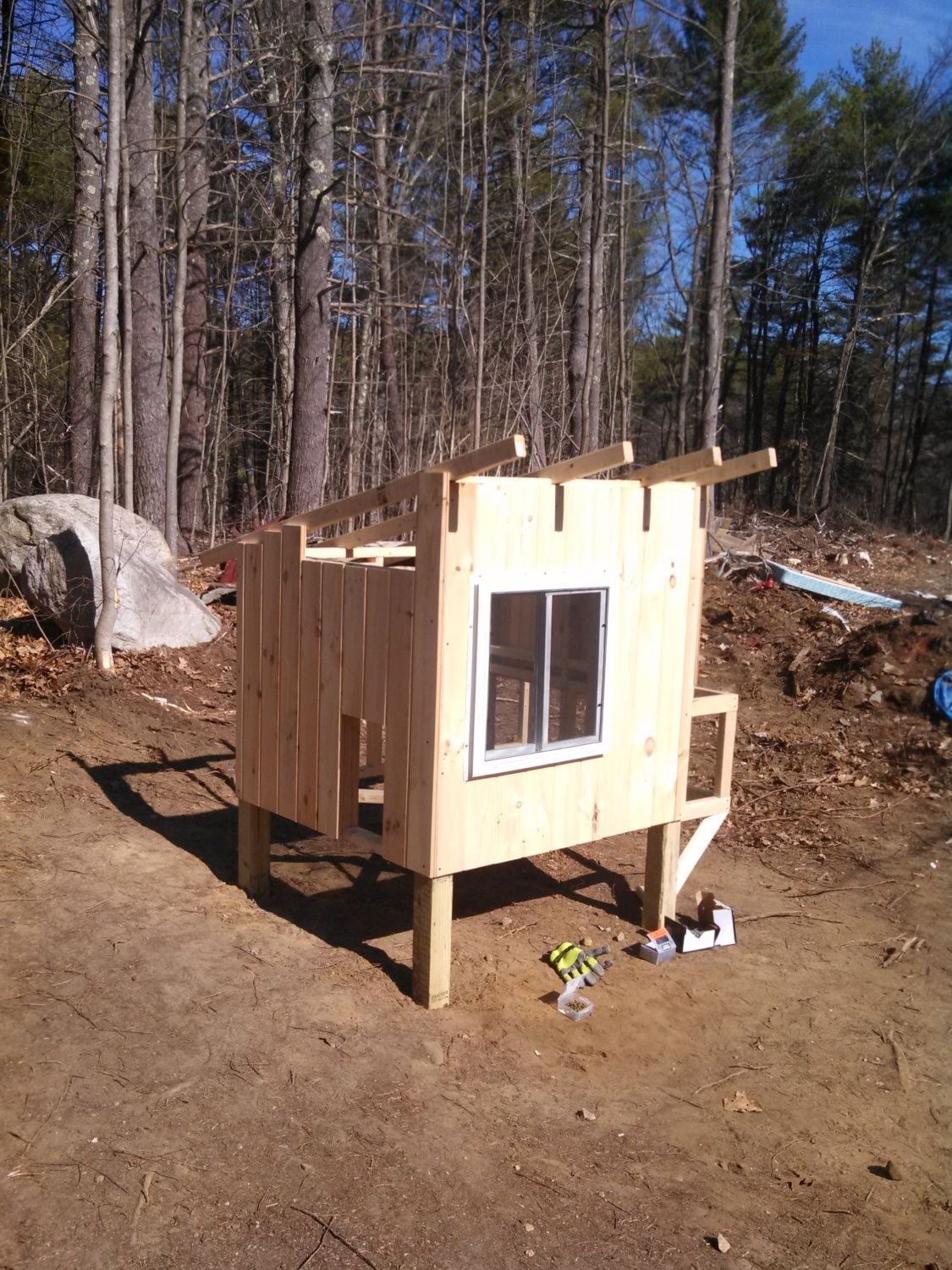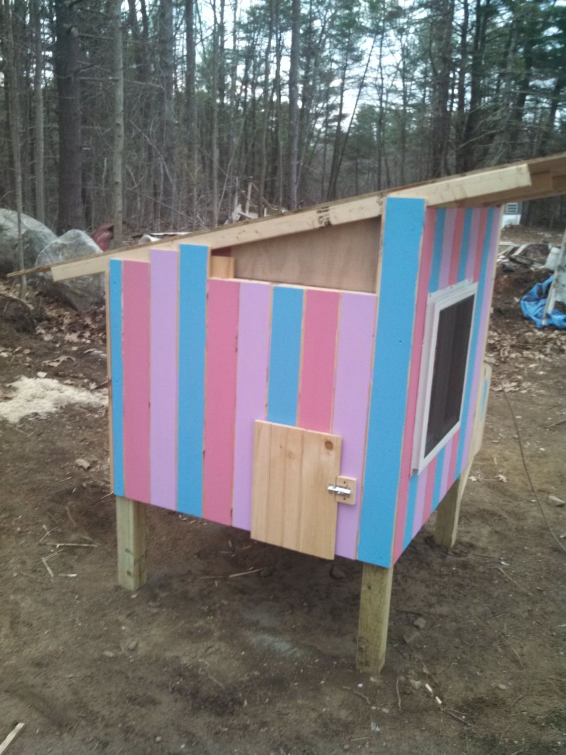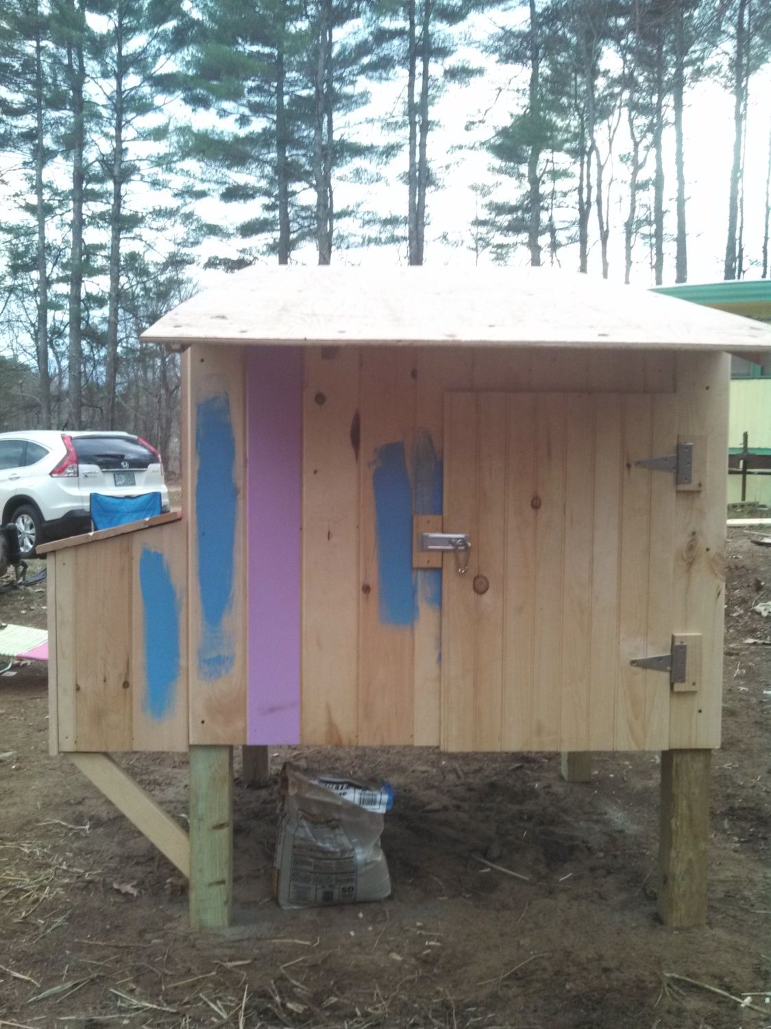 3 weeks later the coop is underway and not a minute too soon as the 3 little ladies brought home that first day are eager to get into their new digs!