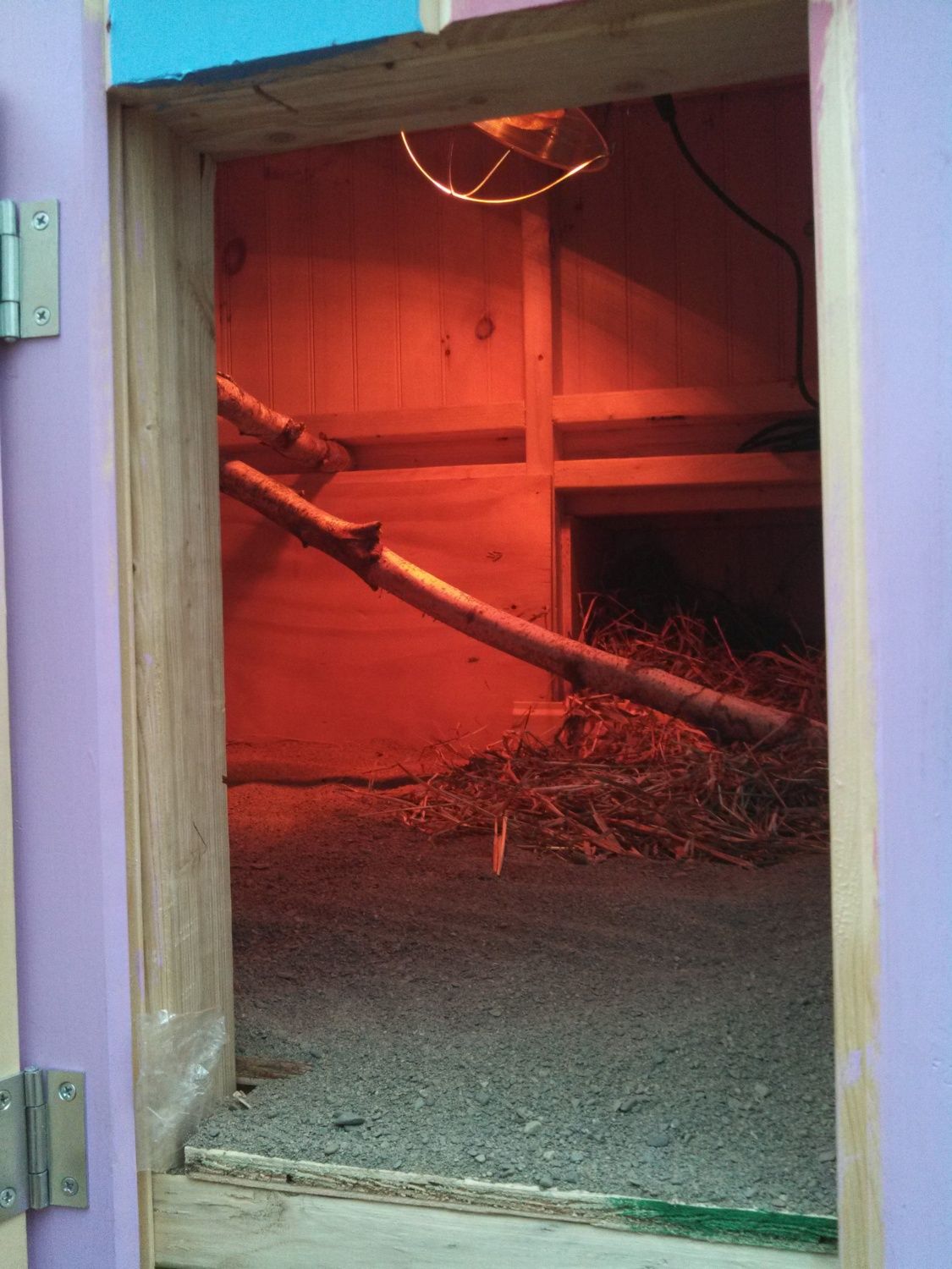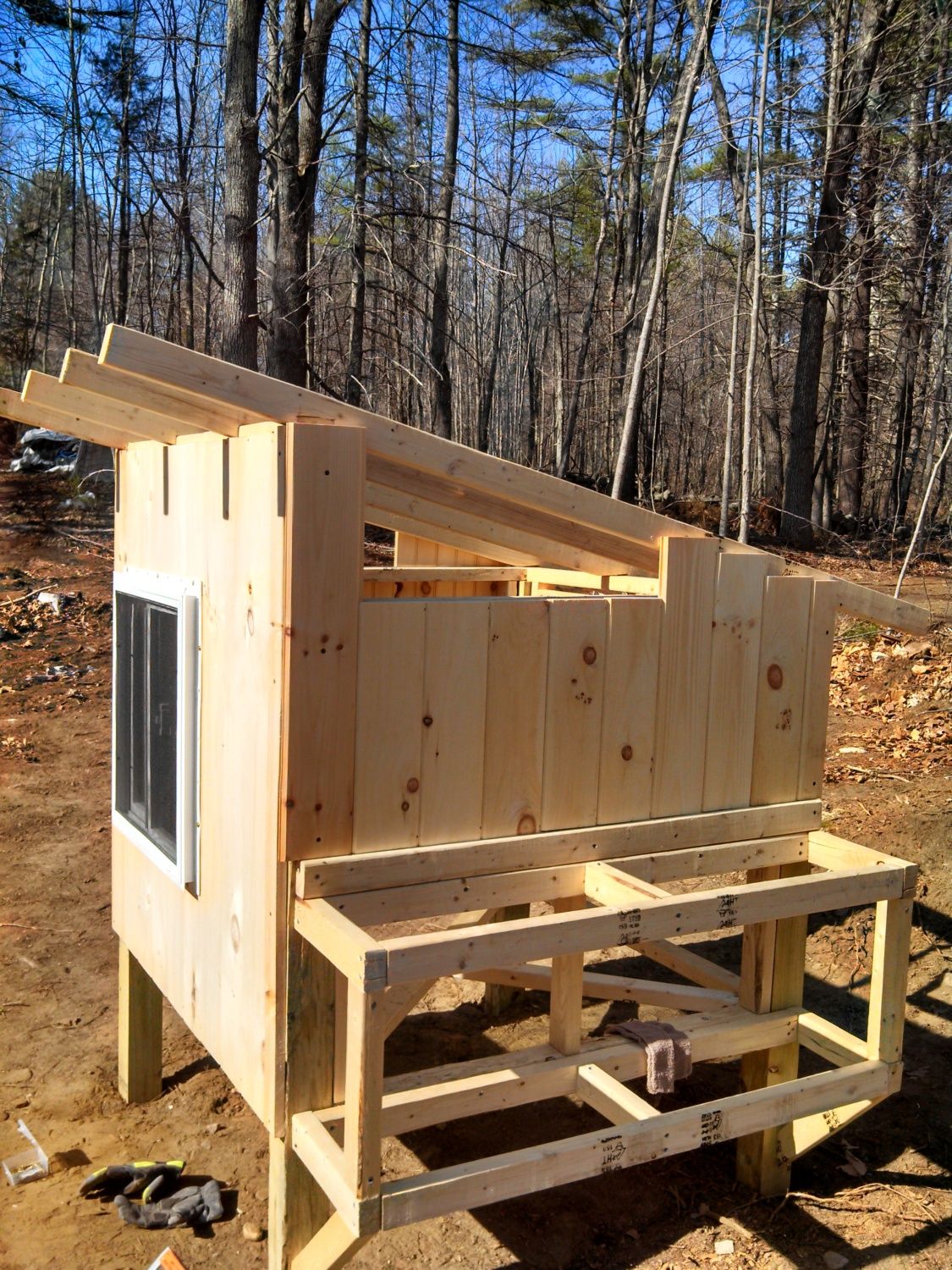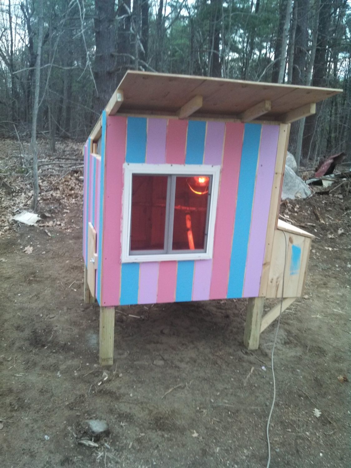 3 weeks later the coop is underway and not a minute too soon as the 3 little ladies brought home that first day are eager to get into their new digs!