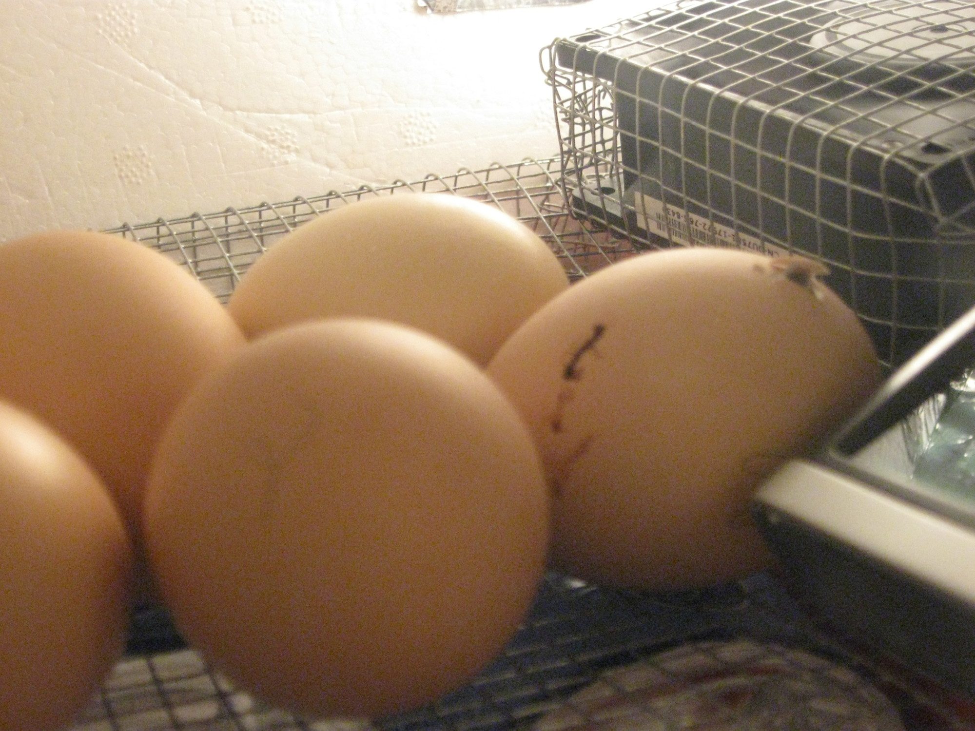 not yet, just note what time ok?Still no chick it is taking its sweet time! One of the other eggs also cracked the shell but the white part is not broken...should I be concerned?