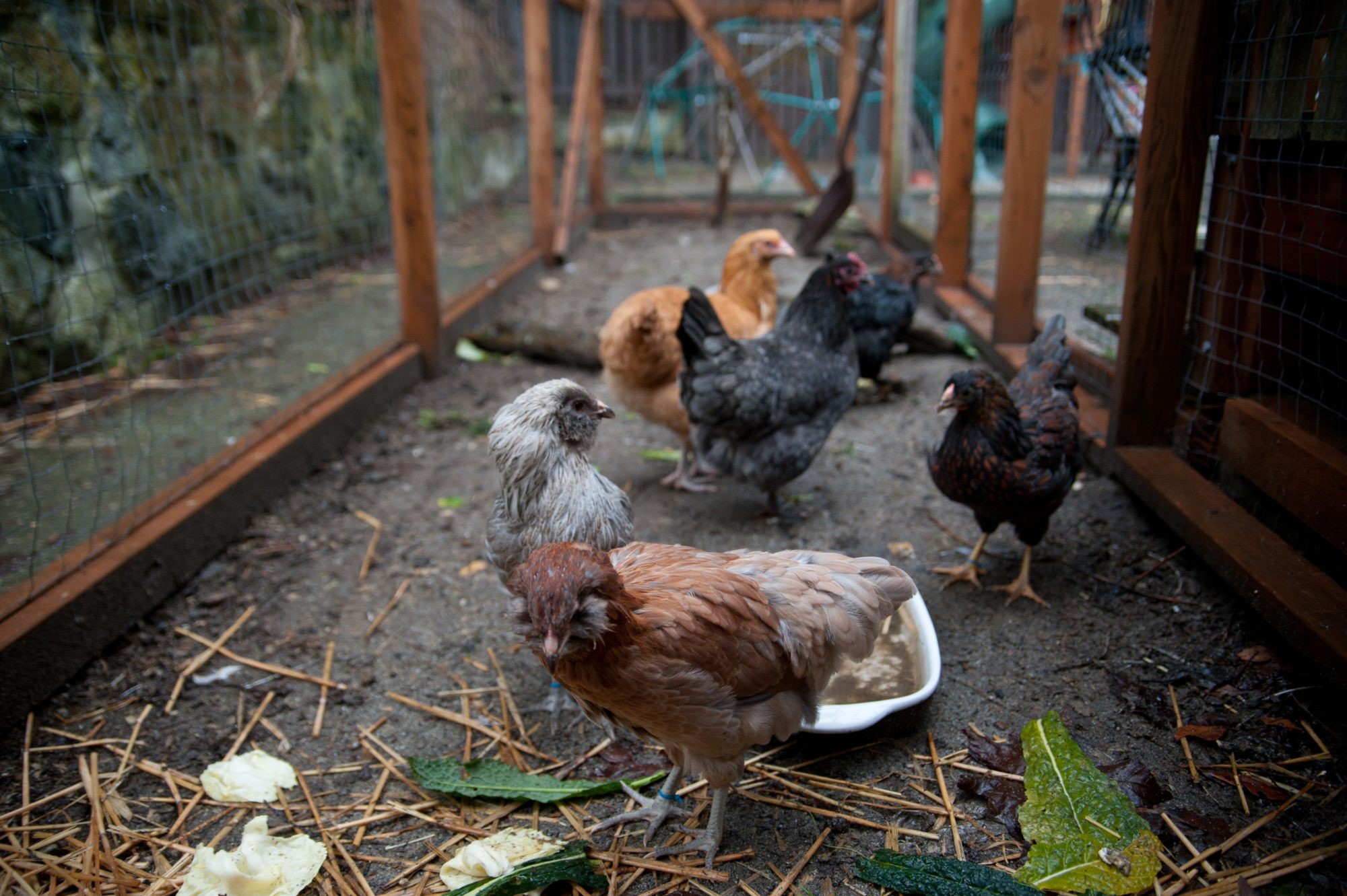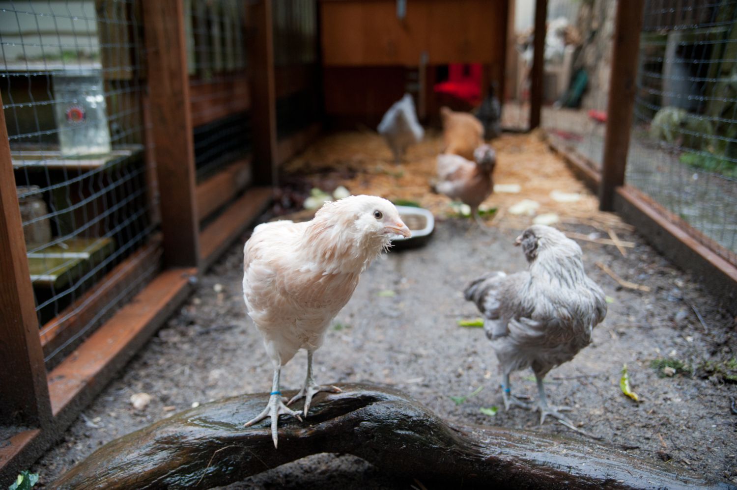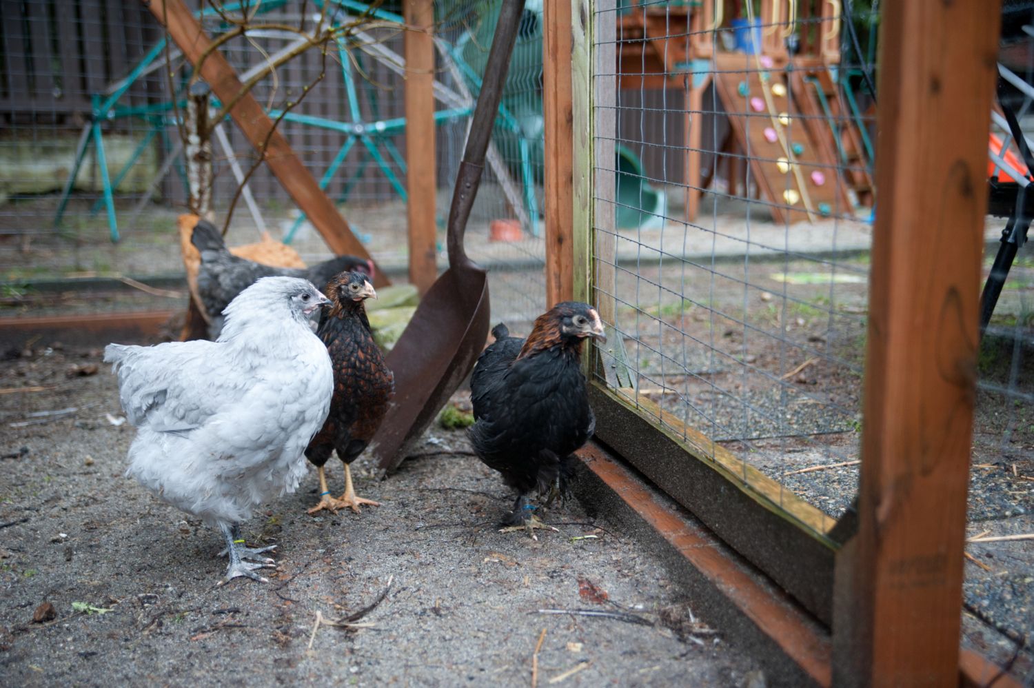 The EEs always run out first to give us heck! They are so noisy - Why did you bring new chickens and upset our flock!!