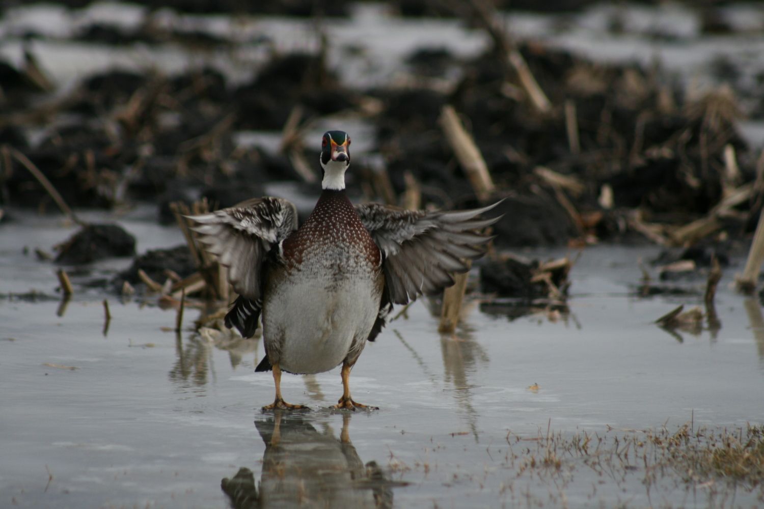 I took some more pictures this afternoon! The snow and ice is melting, but it's cloudy... so most of the pictures aren't that great. A few did turn out well though! Vienna Reyna landing (maybe more like crash-landing) :P Snuggles Blaire Dory (she is molting) :D Blaire flying Phyllis Ella (also molting) Reyna... when one duck strikes mud... Her sister joins... Then they were kicked out by the more senior members of the flock. :lol: Oliver is the guardian of the flock, he always alerts everyone to danger. He was happily foraging... Then a falcon came over! (I wouldn't have seen it unless Oliver alerted me to it) Then he was VERY alert! :lau Fin