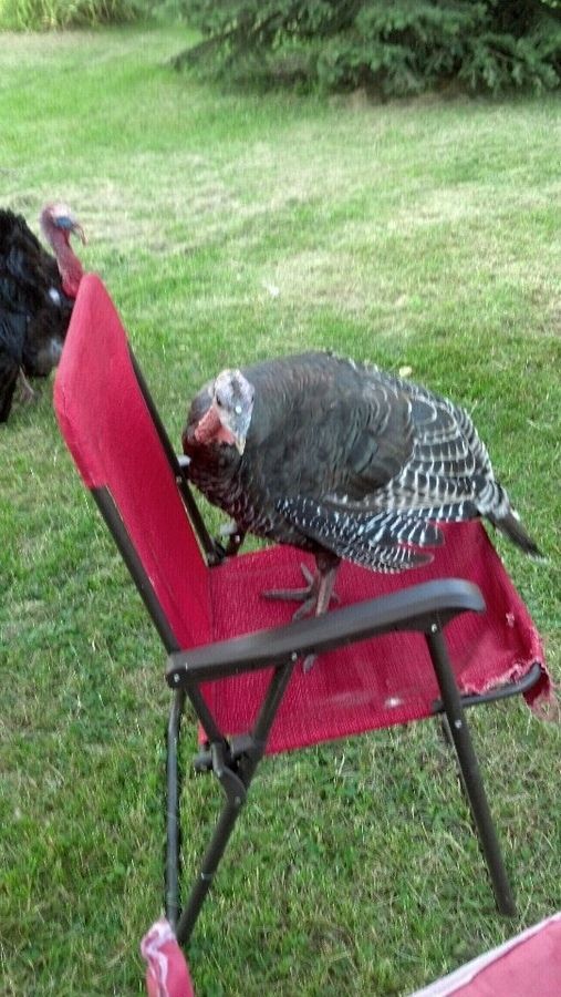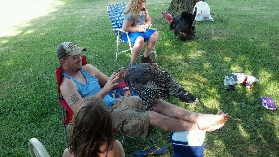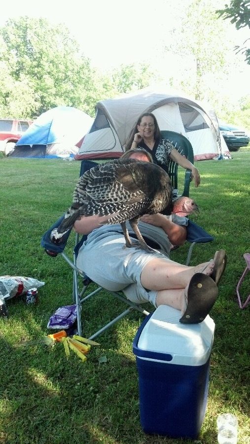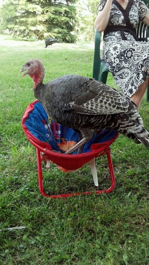 He had a gathering at his place, and the turkeys constantly were in everyone's business. A few times, we had to usher them away (they were trying to eat food off the table), but they loved it.