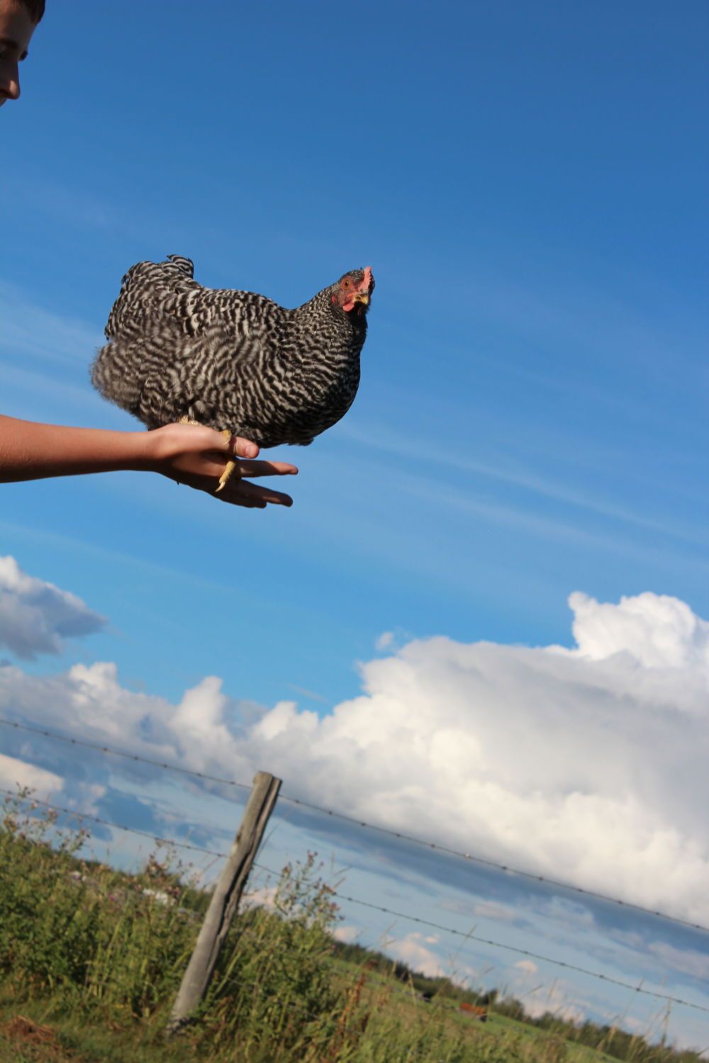 Pepper the roo is majestic, and all the hens are lovely. I also think that last photo of Barred Rock on the hand with the clouds in the background is cool.
