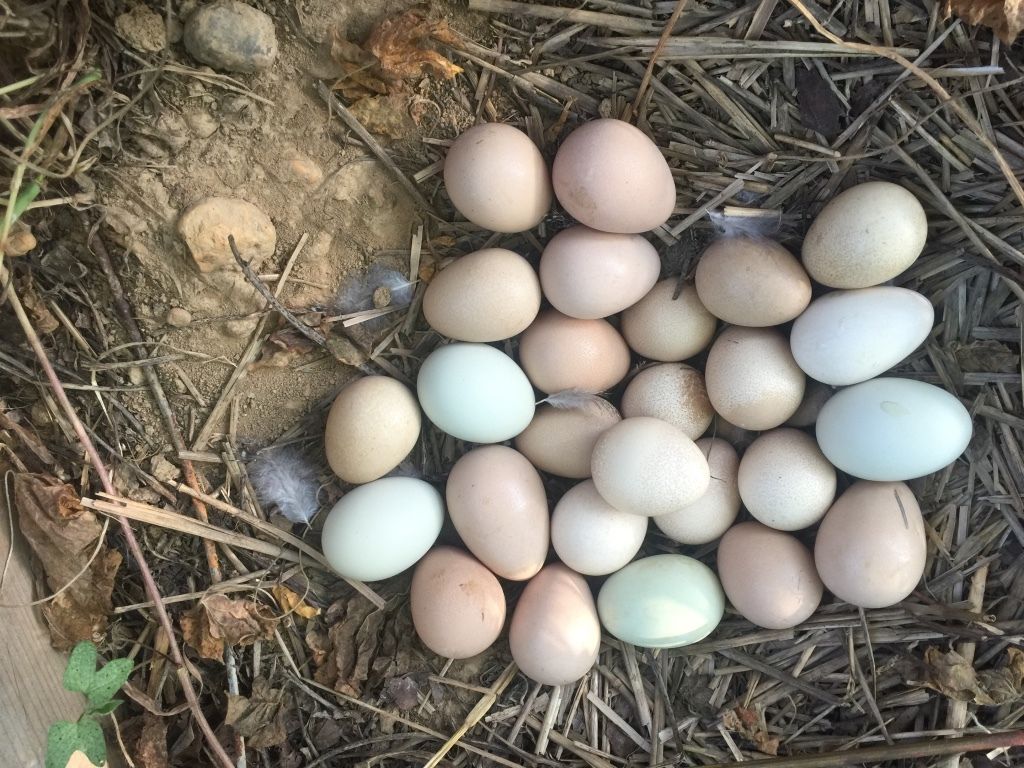 Our guinea did not come home to roost a few nights ago. We thought she might have been killed by a fox like the other three we had. Our dog found her sitting on a clutch of 15 eggs in the bushes behind the smoke house. I felt so sorry for her that I added two of our fertilized chicken eggs to her clutch. I hope at least one will hatch so she doesn't sit all that time for nothing. I just hope they don't turn out to be roosters