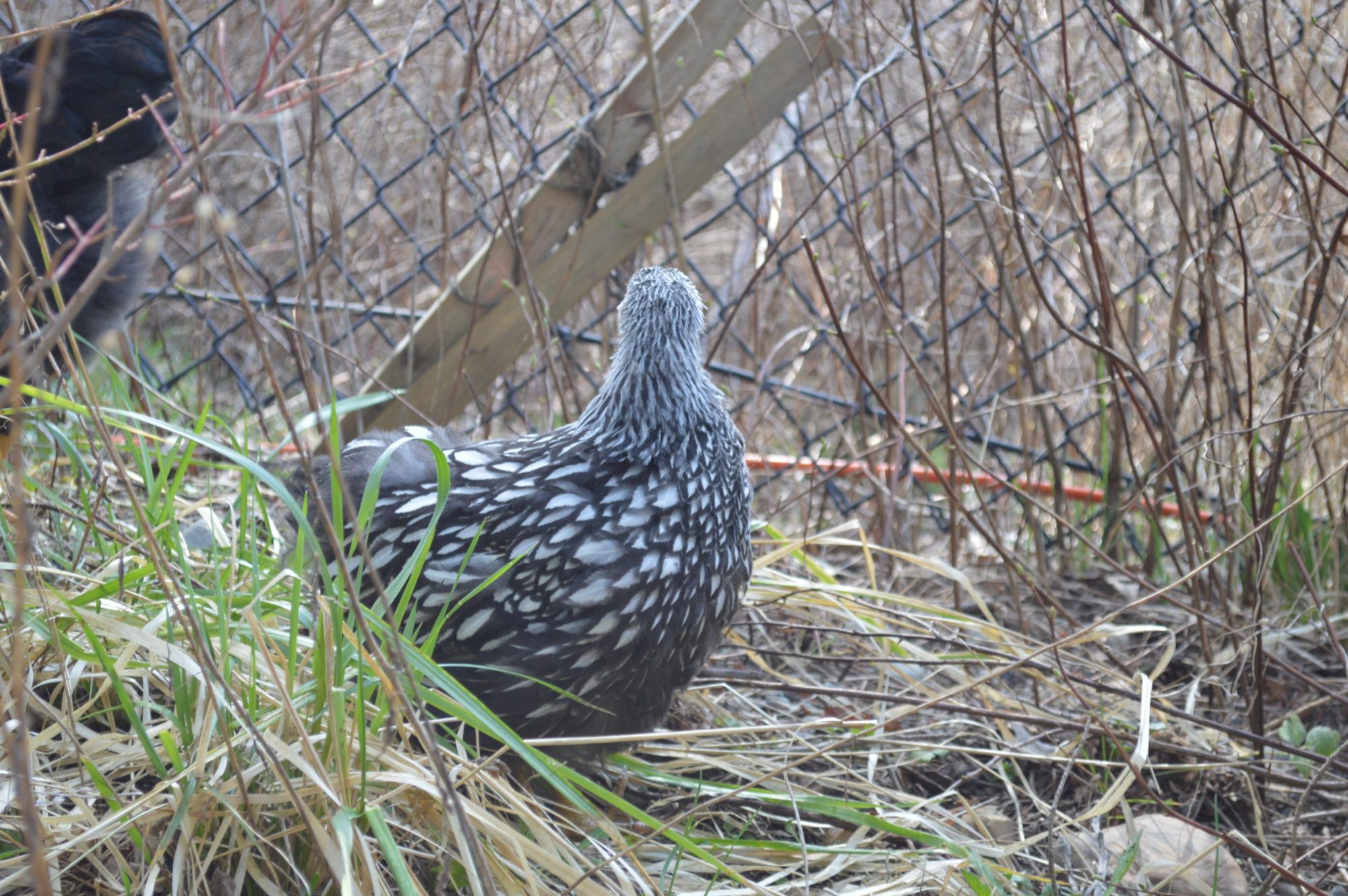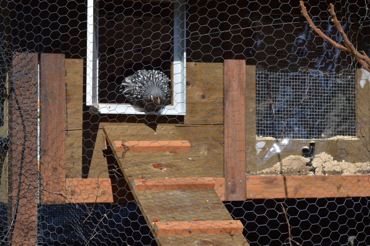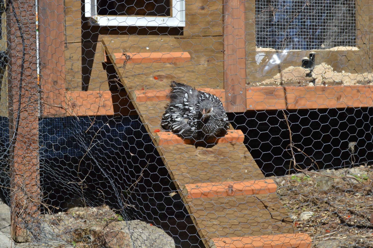 This is the first time they saw their door come open. Juanita is our Silver Laced and is the smallest. She rules the roost, gets all the good treats and is the bravest by far...