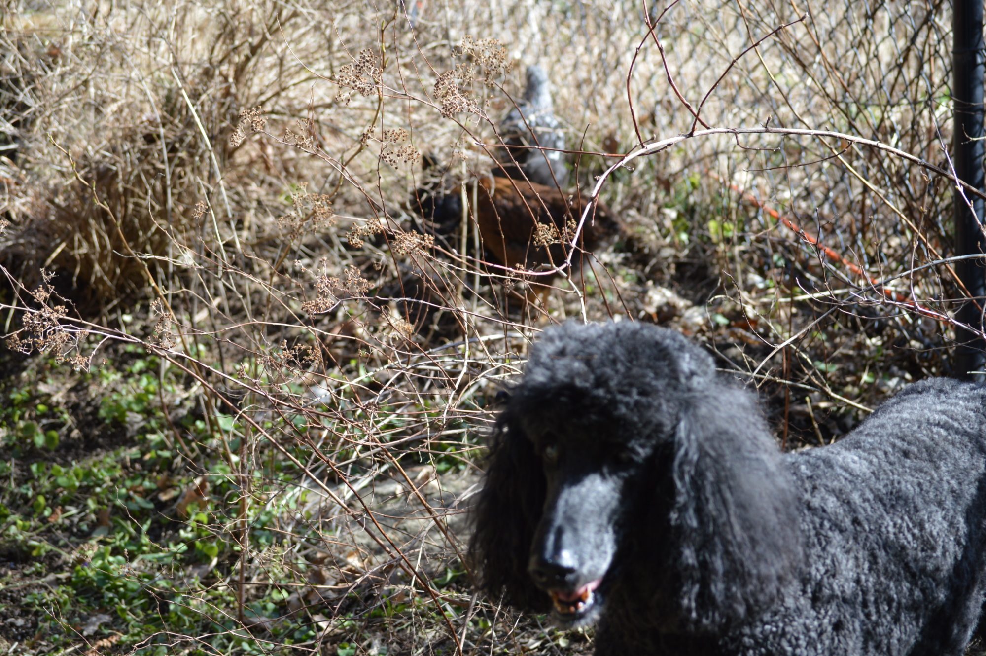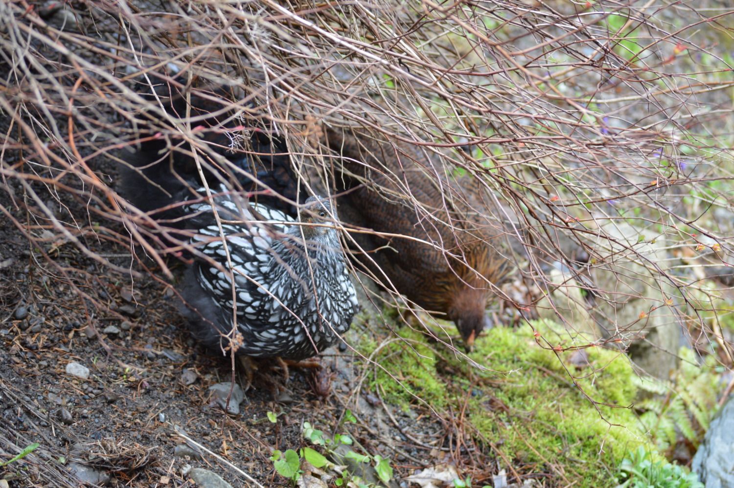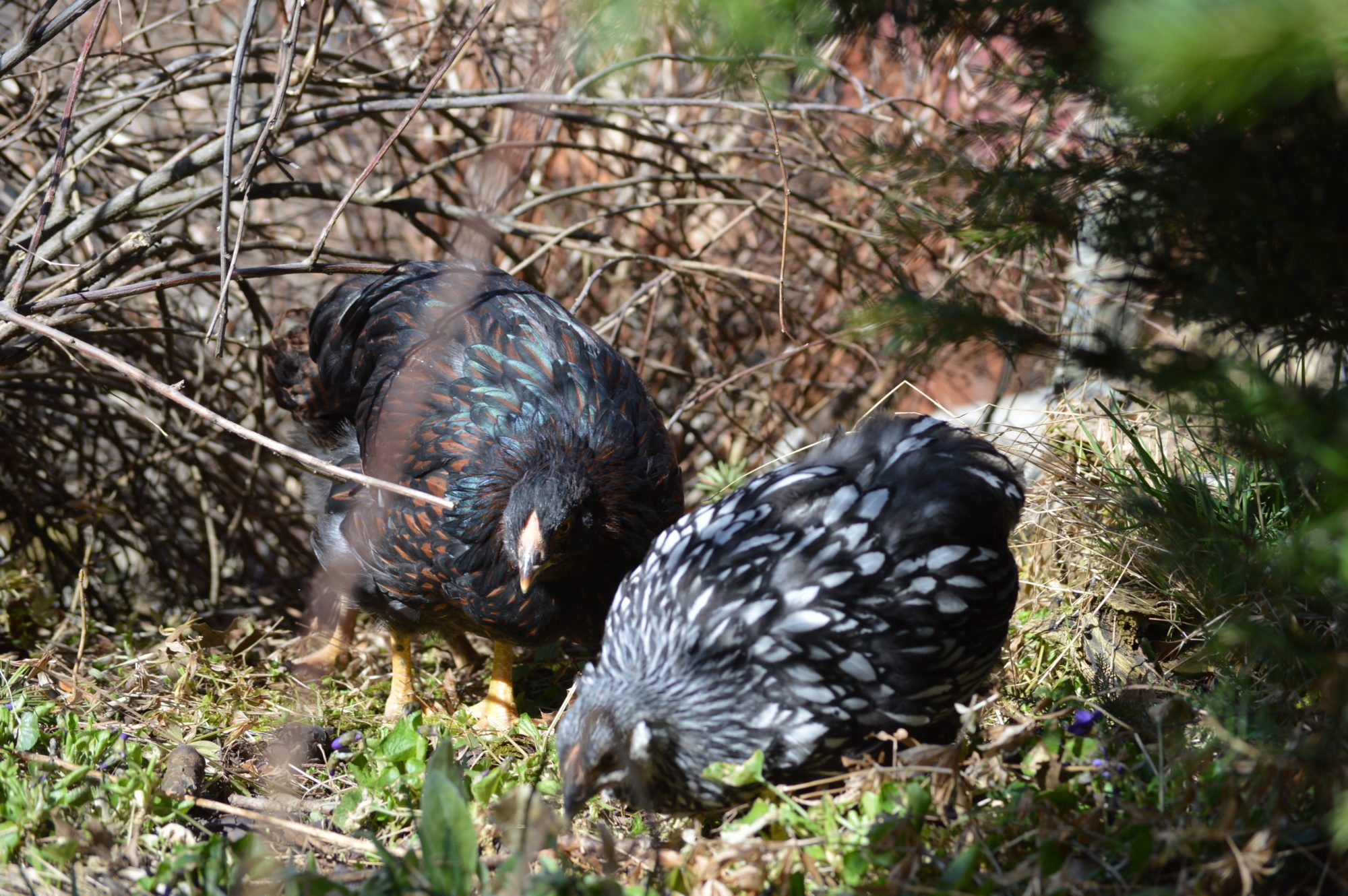 This is the first time they saw their door come open. Juanita is our Silver Laced and is the smallest. She rules the roost, gets all the good treats and is the bravest by far...