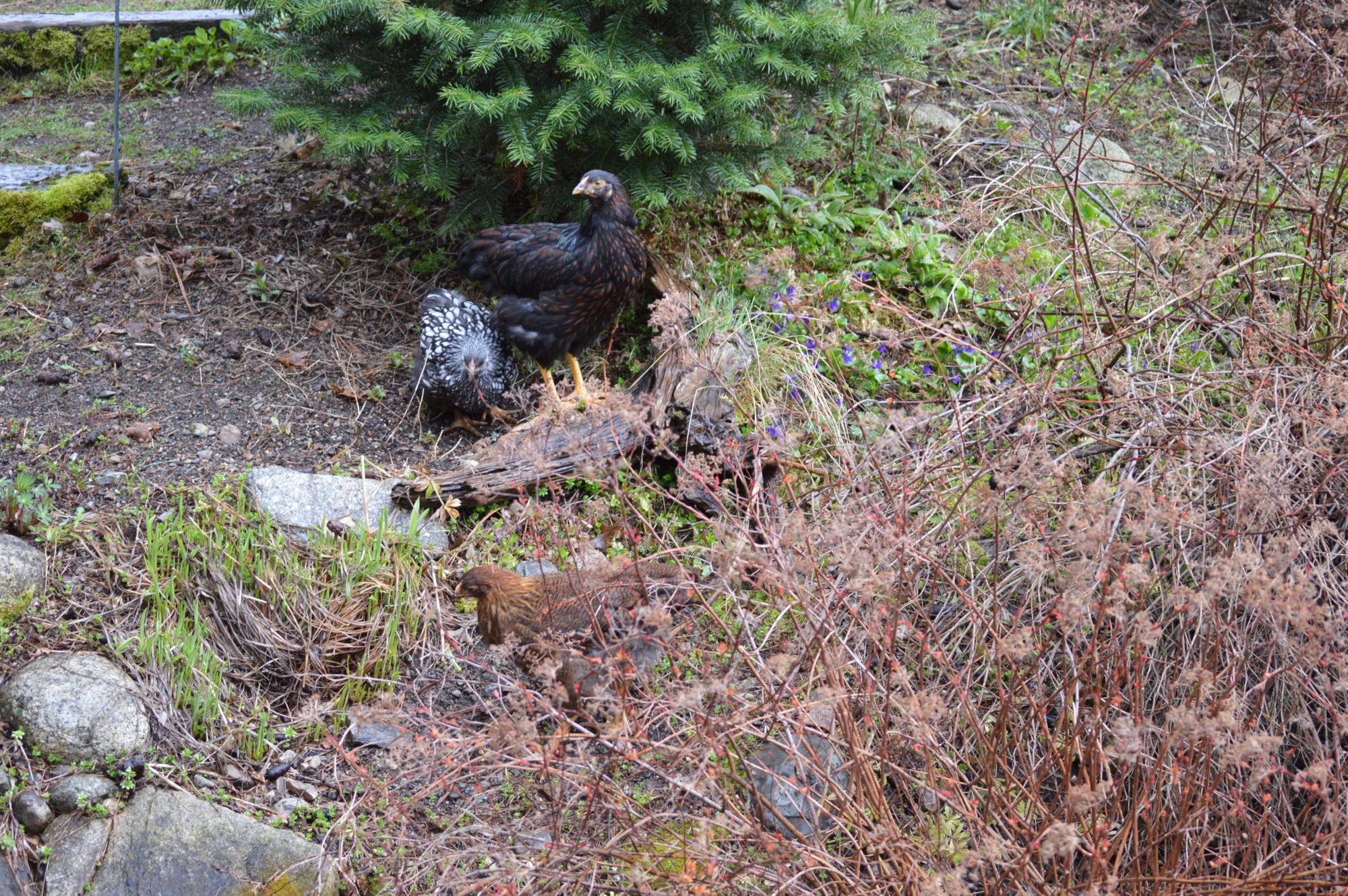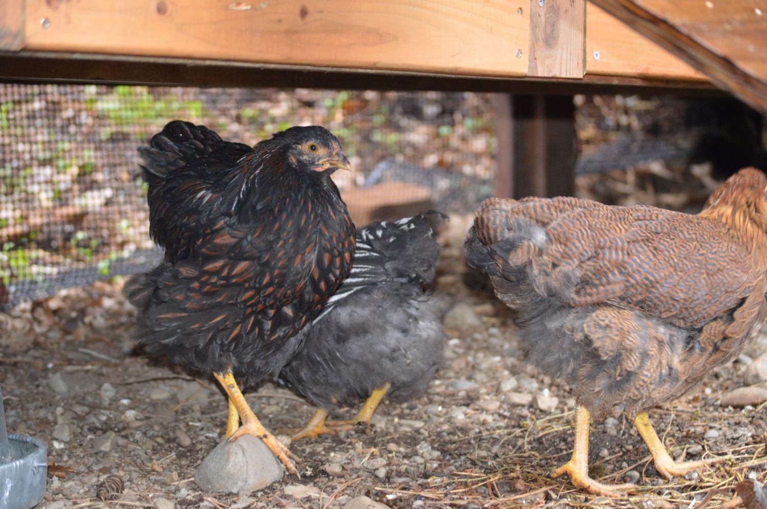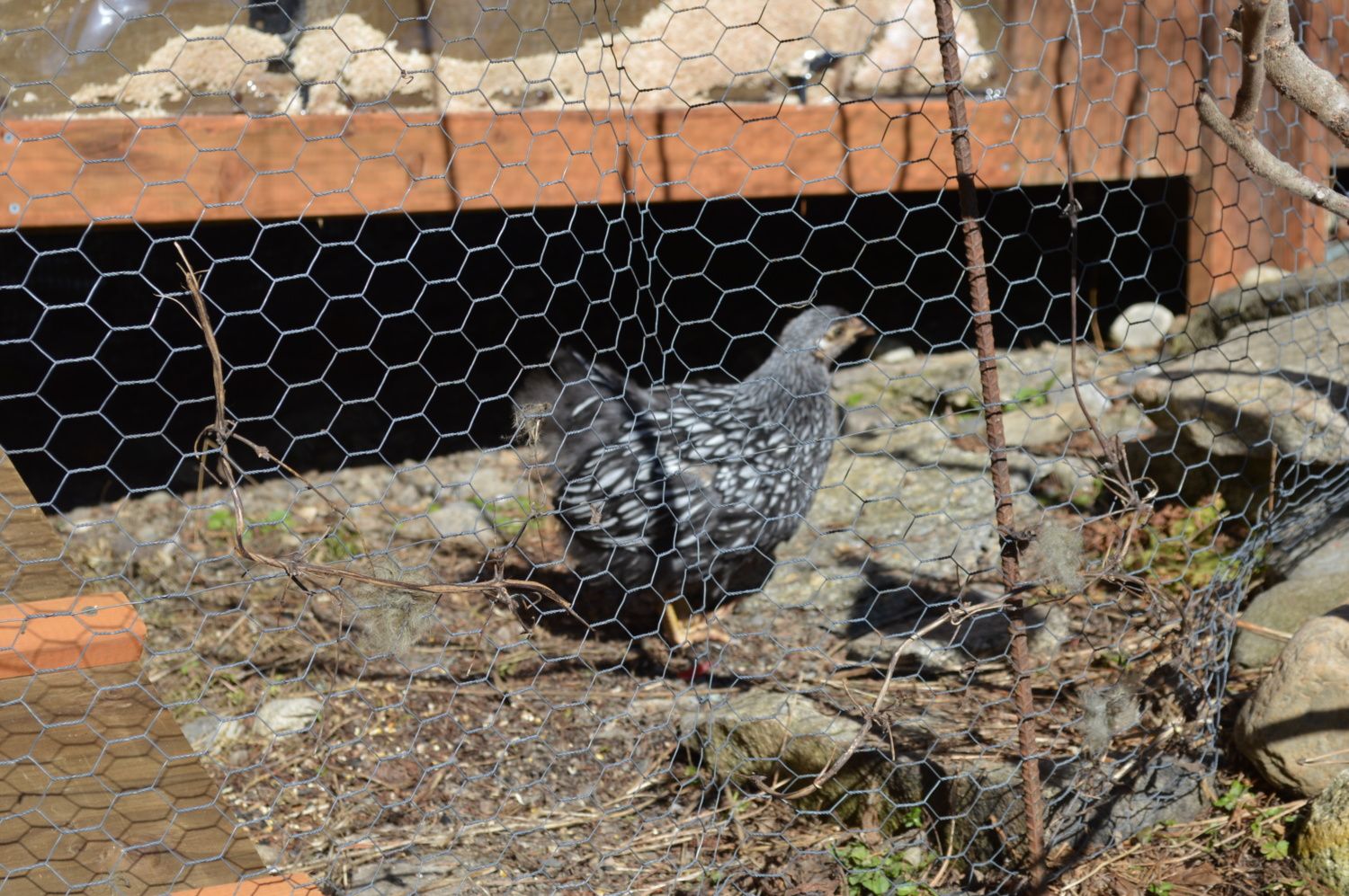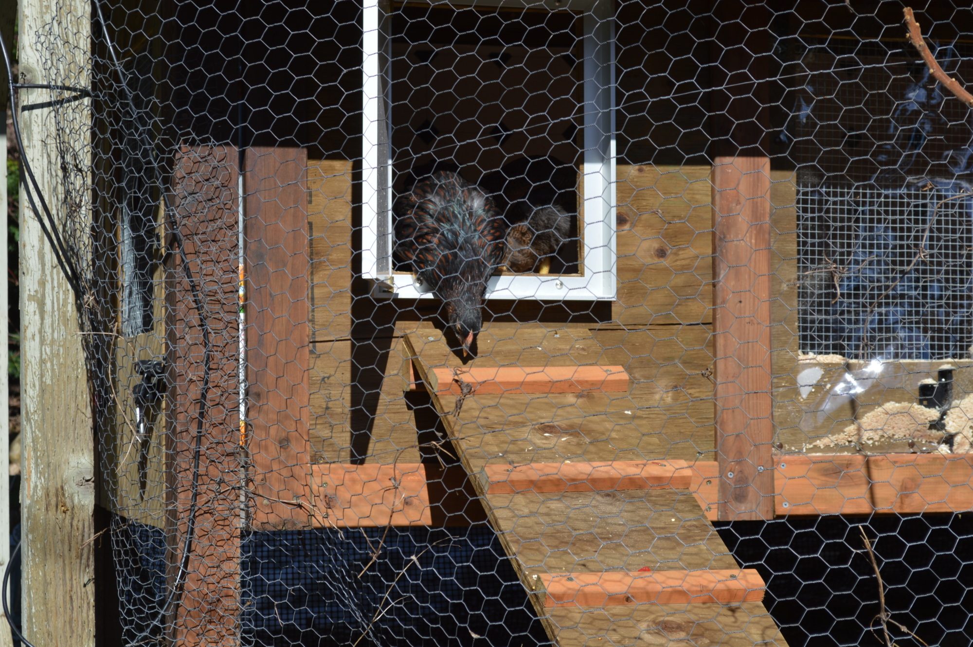 Our little flock arrived via Chickenhill and the US Postal Service about 3 weeks ago. We wanted 3 and all in different colors and all hens so Tisha kept them until they were 7 weeks old. They spent the first 2 weeks in their coop getting used to home and then I cobbled a little enclosure together so they could experience the out of doors without us having to do a big chicken roundup each night to get them back in their safe coop.