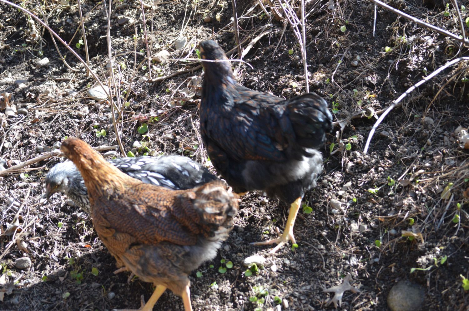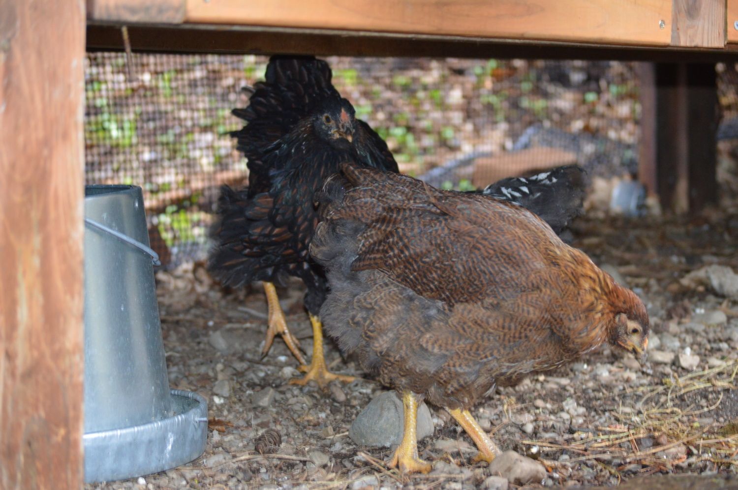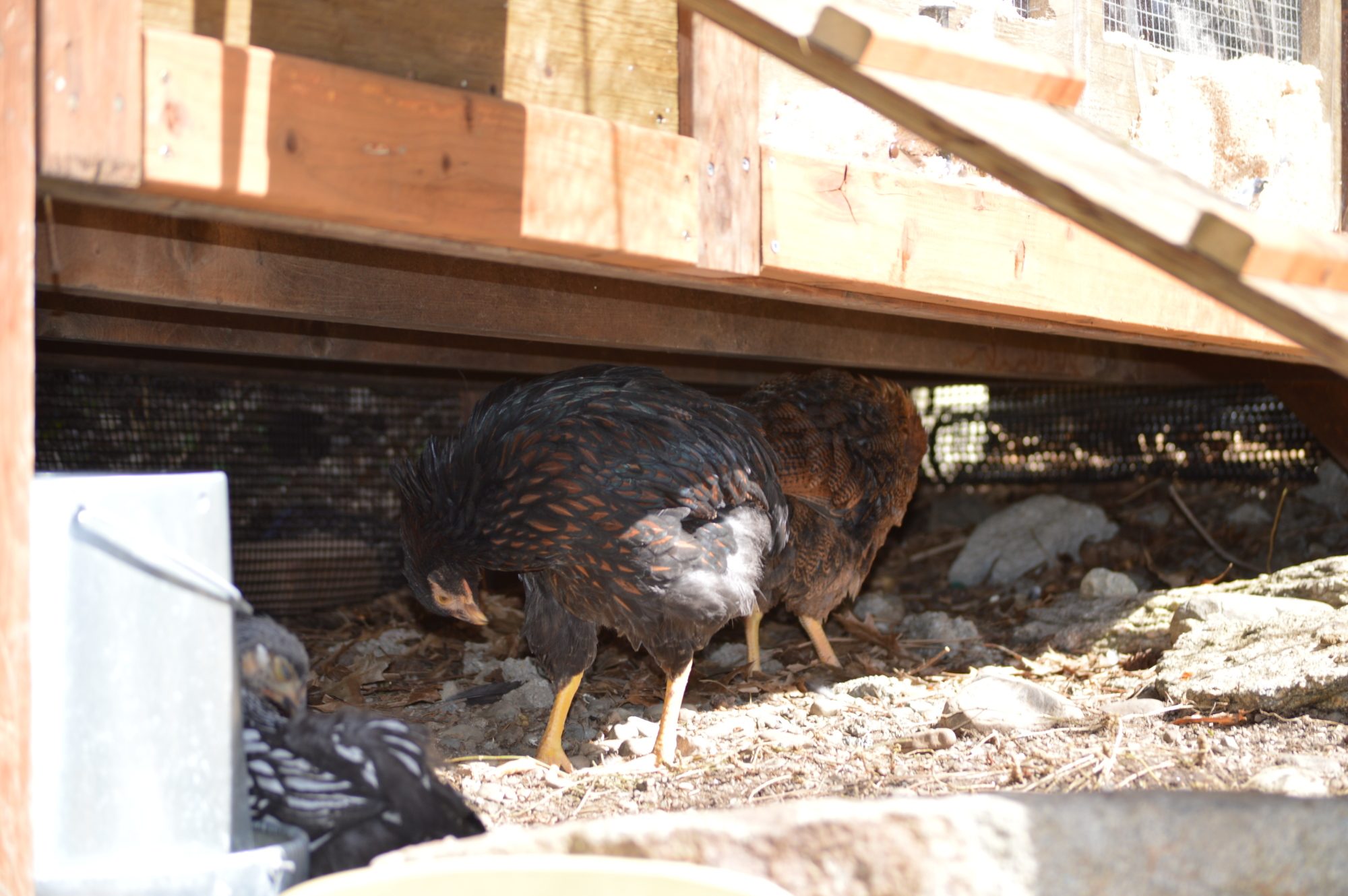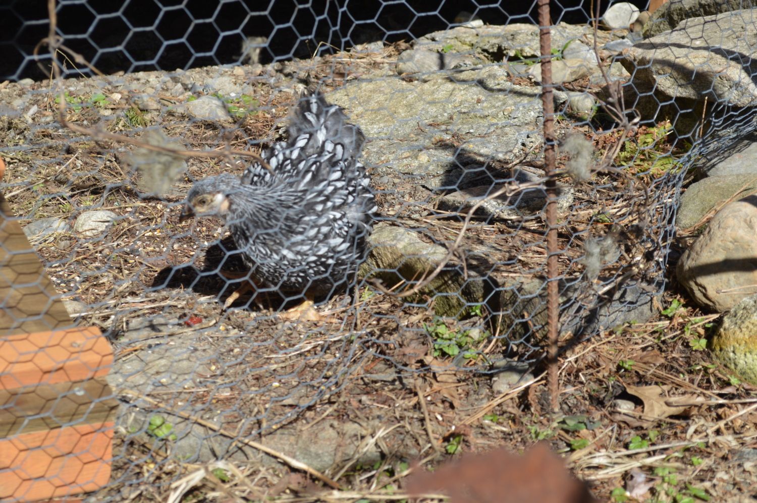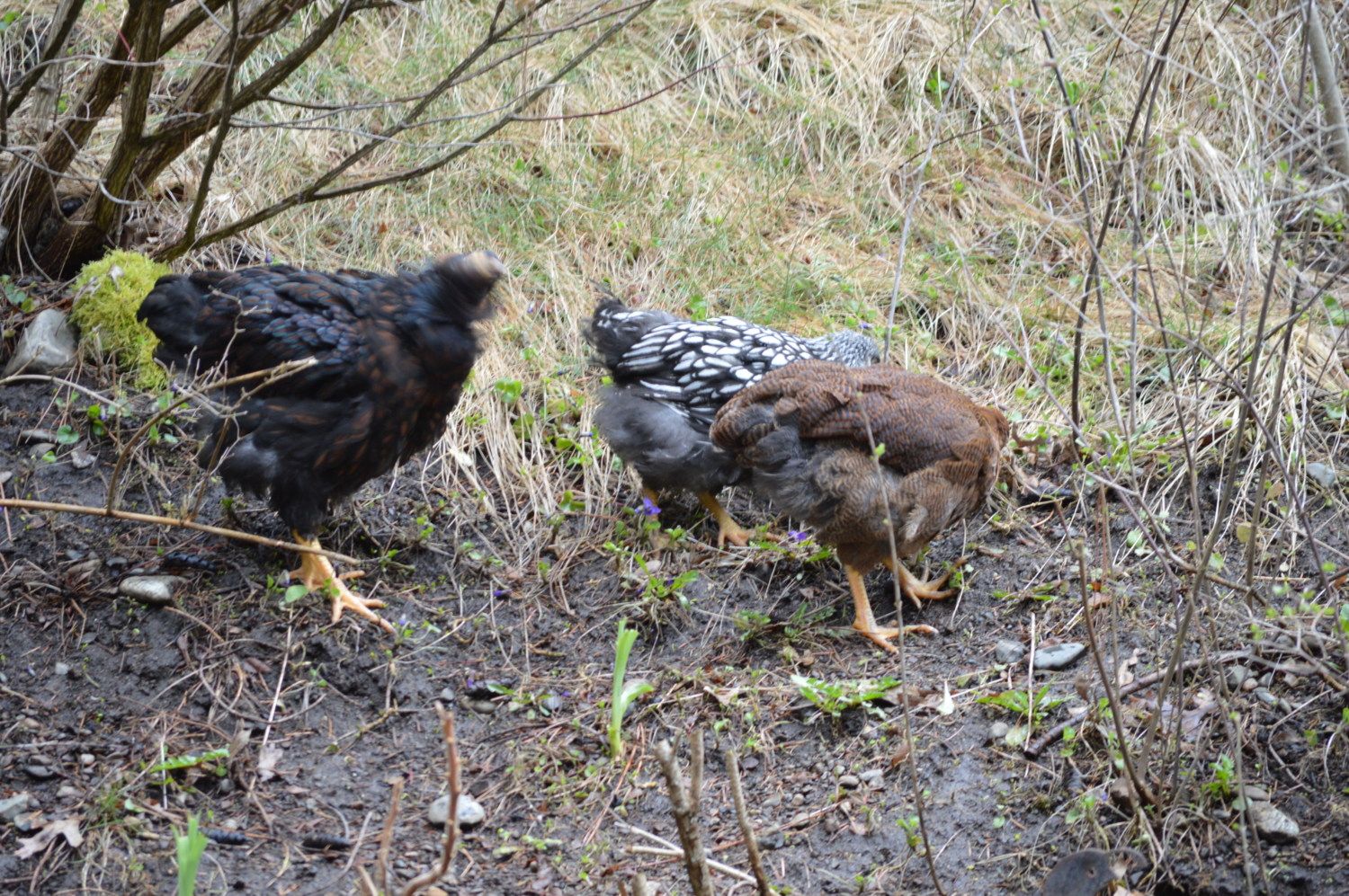 Our little flock arrived via Chickenhill and the US Postal Service about 3 weeks ago. We wanted 3 and all in different colors and all hens so Tisha kept them until they were 7 weeks old. They spent the first 2 weeks in their coop getting used to home and then I cobbled a little enclosure together so they could experience the out of doors without us having to do a big chicken roundup each night to get them back in their safe coop.