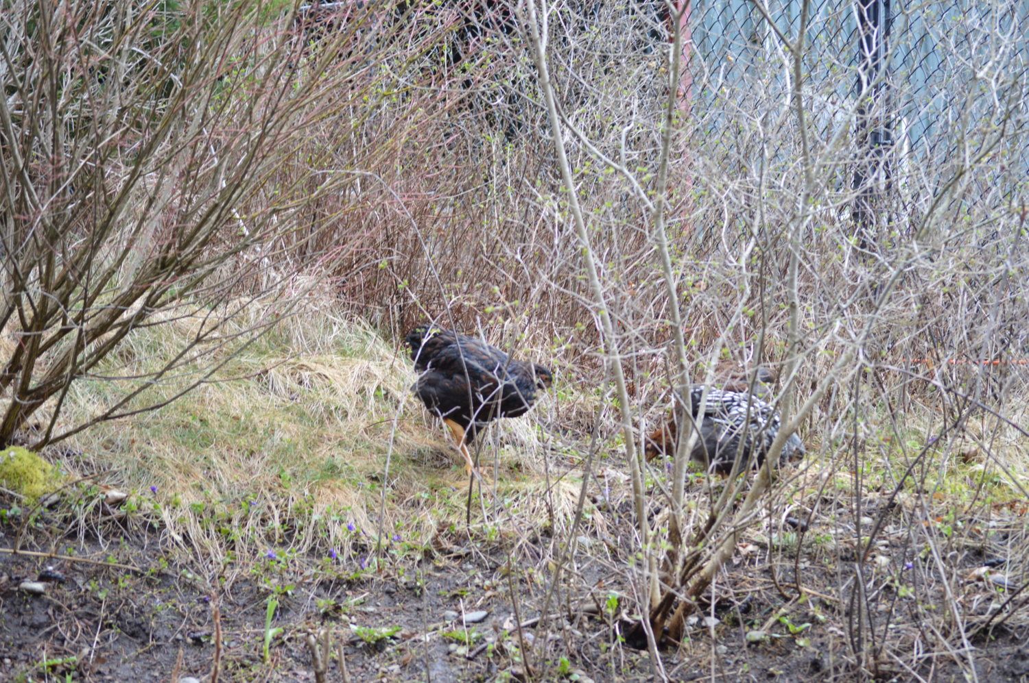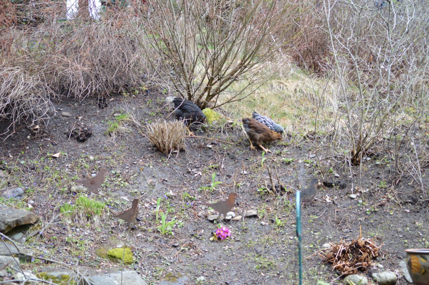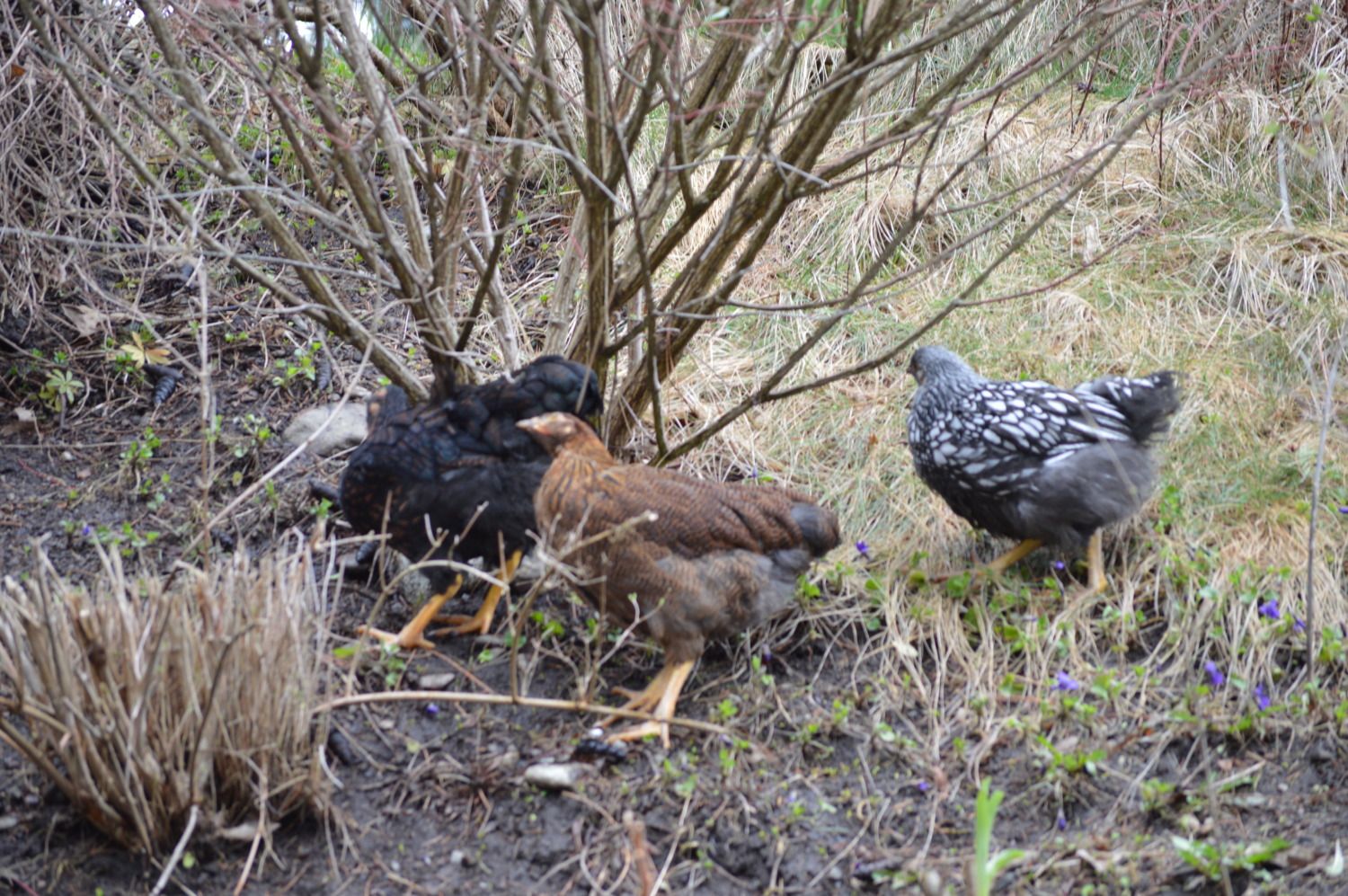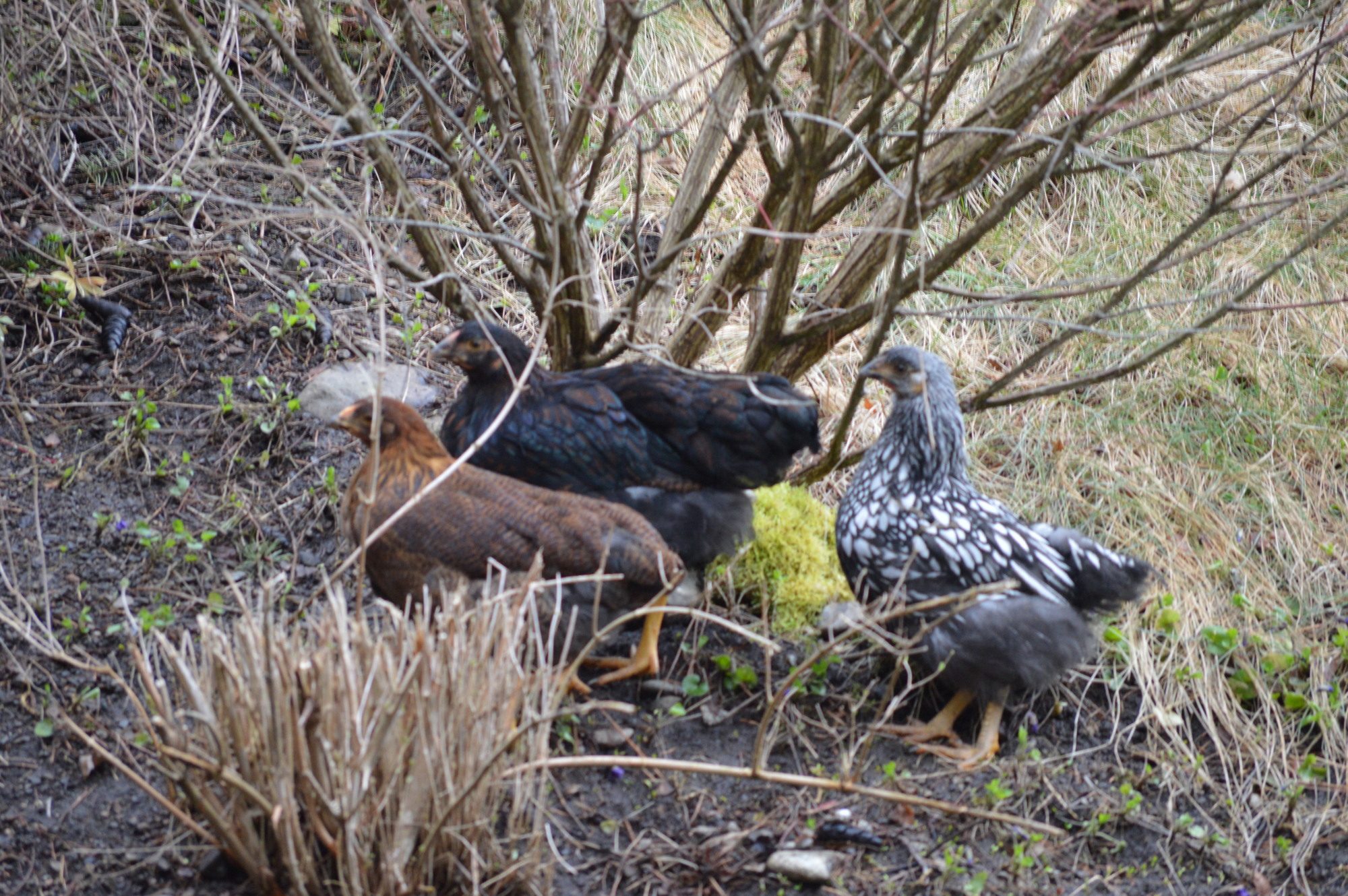 Our little flock arrived via Chickenhill and the US Postal Service about 3 weeks ago. We wanted 3 and all in different colors and all hens so Tisha kept them until they were 7 weeks old. They spent the first 2 weeks in their coop getting used to home and then I cobbled a little enclosure together so they could experience the out of doors without us having to do a big chicken roundup each night to get them back in their safe coop.