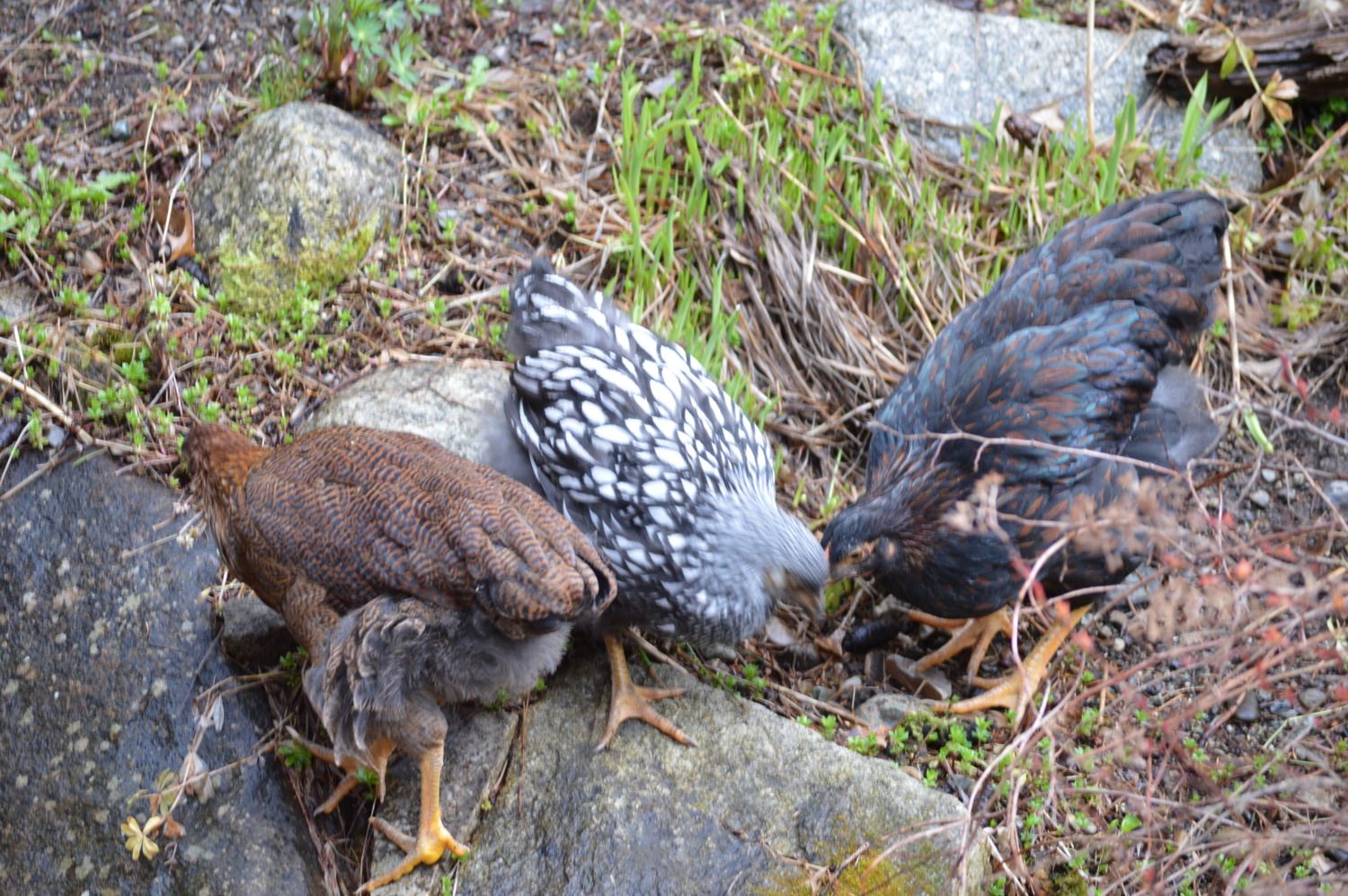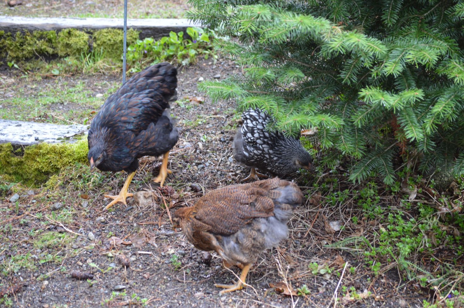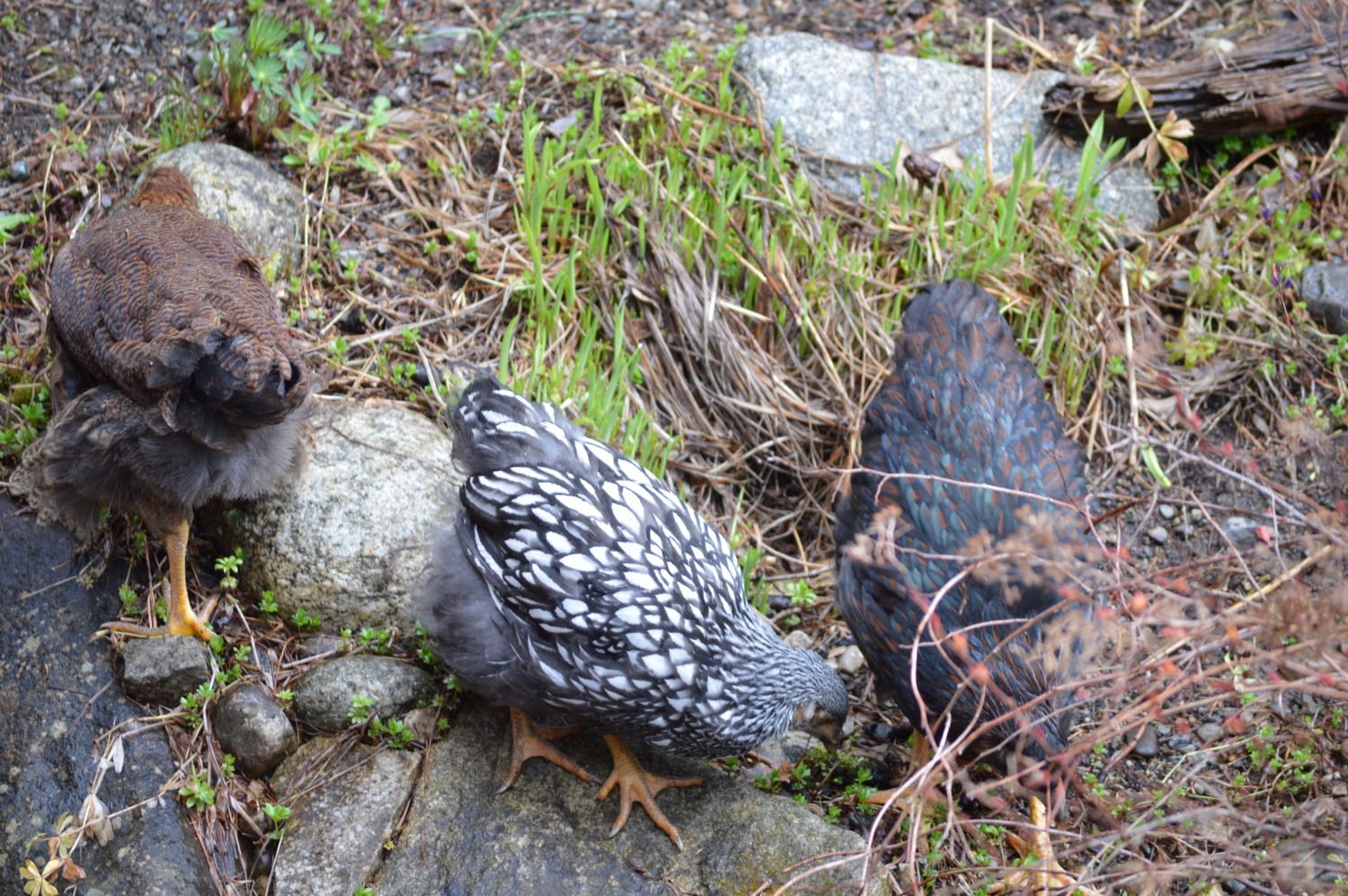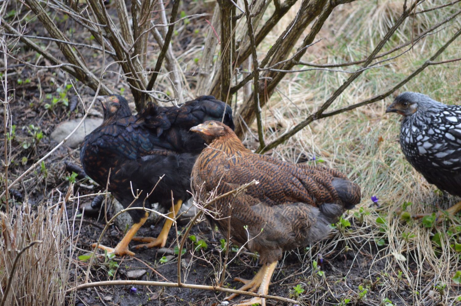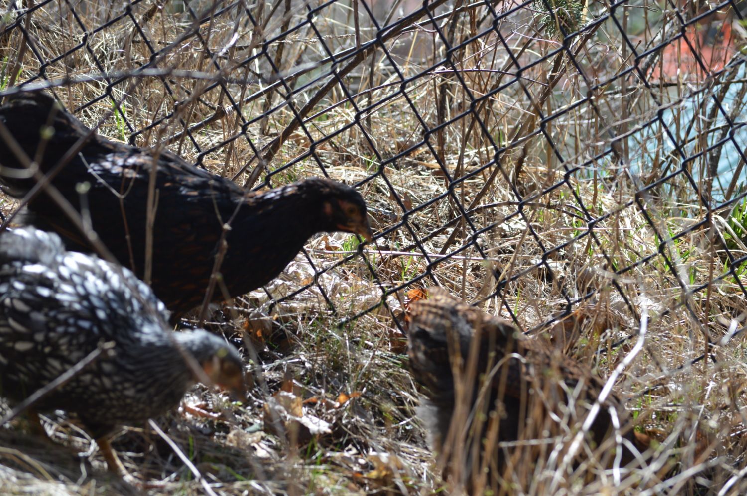 Our little flock arrived via Chickenhill and the US Postal Service about 3 weeks ago. We wanted 3 and all in different colors and all hens so Tisha kept them until they were 7 weeks old. They spent the first 2 weeks in their coop getting used to home and then I cobbled a little enclosure together so they could experience the out of doors without us having to do a big chicken roundup each night to get them back in their safe coop.