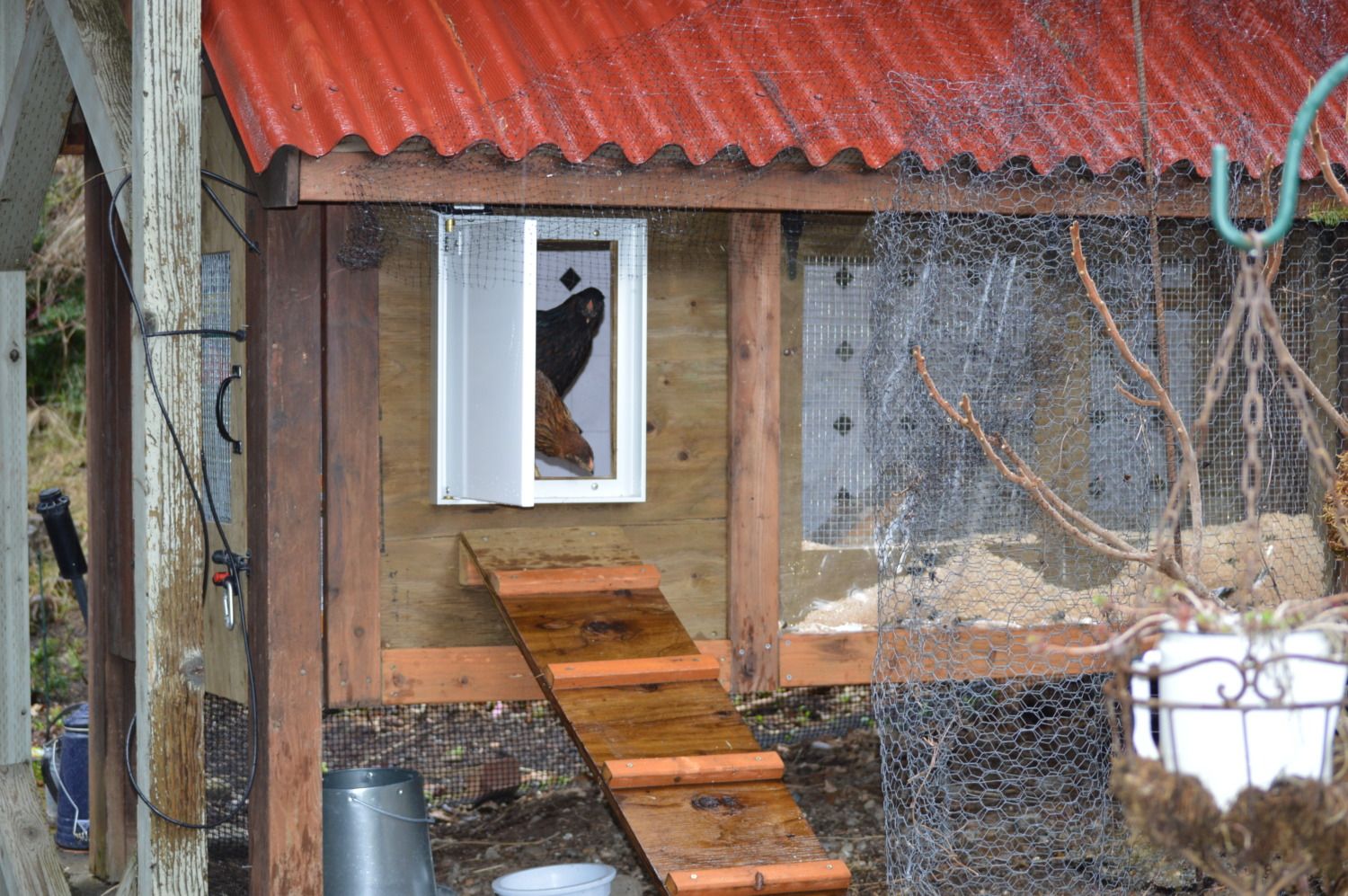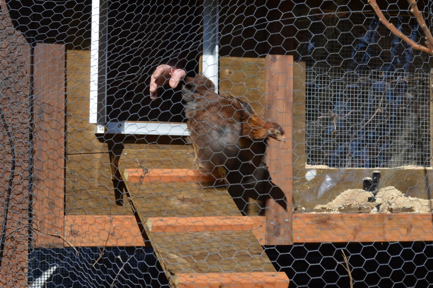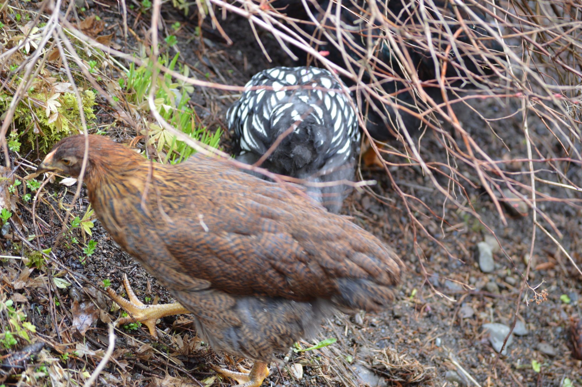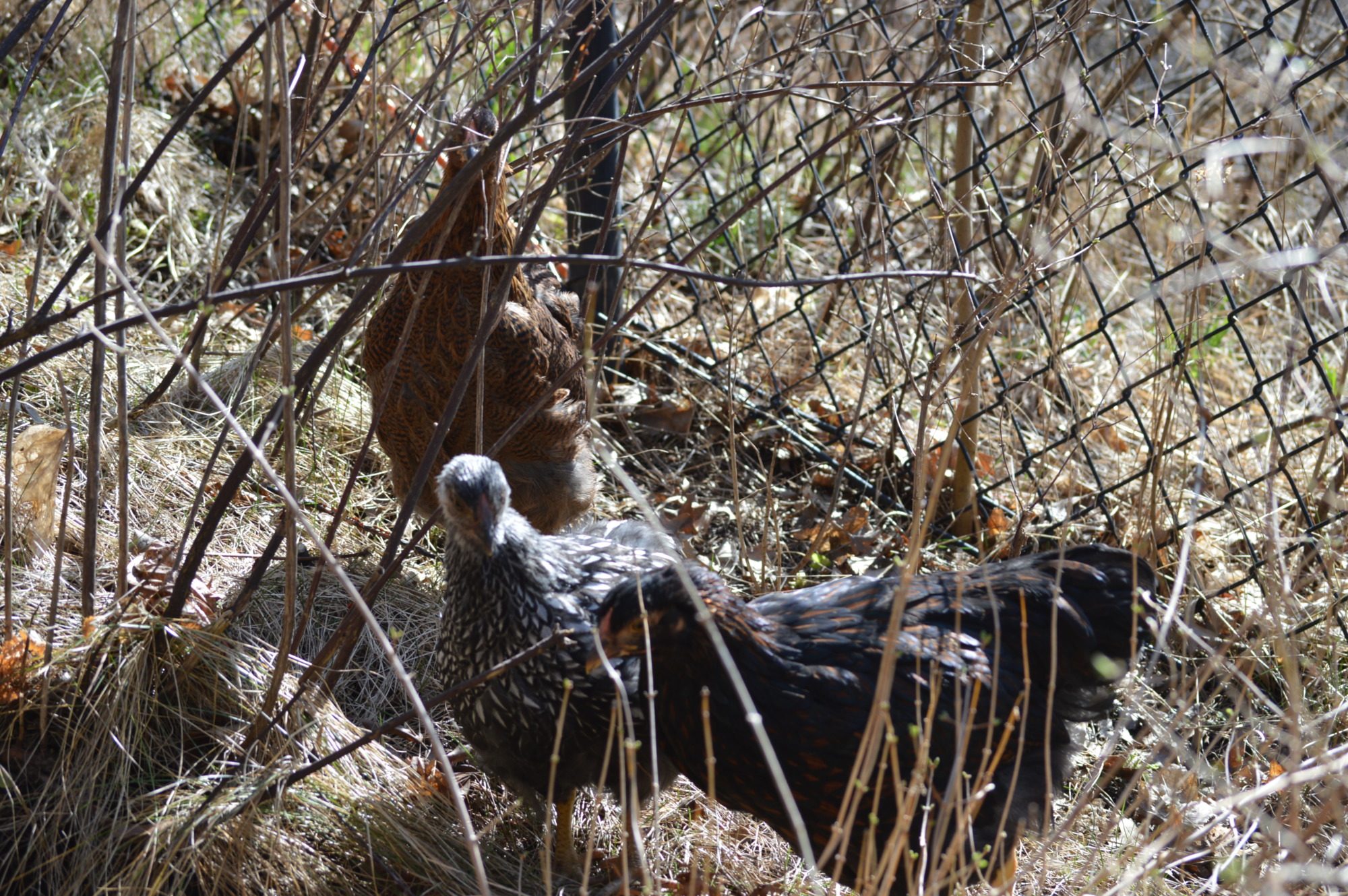 Our little flock arrived via Chickenhill and the US Postal Service about 3 weeks ago. We wanted 3 and all in different colors and all hens so Tisha kept them until they were 7 weeks old. They spent the first 2 weeks in their coop getting used to home and then I cobbled a little enclosure together so they could experience the out of doors without us having to do a big chicken roundup each night to get them back in their safe coop.
