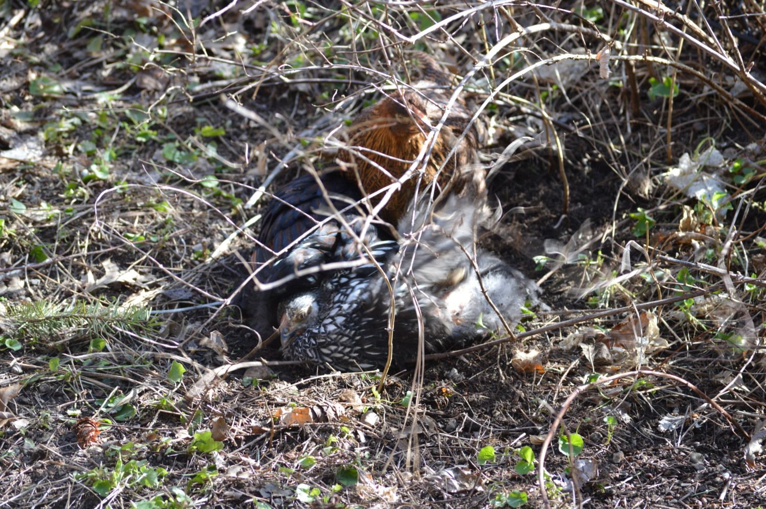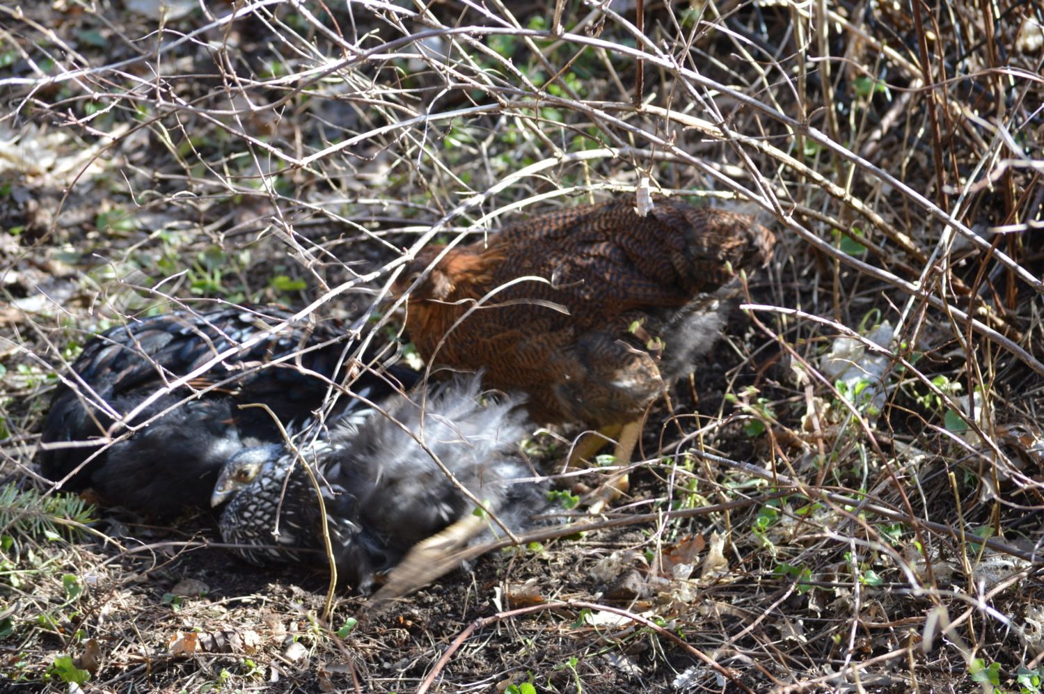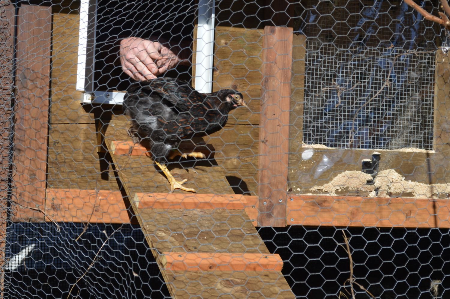 Here they played in the make shift run until dark.....then we had a small roundup because they were going to sleep outside. That would be a no no in our raccoon invested area. It wasn't until the 3rd night that all traipsed up the ramp into their coop.