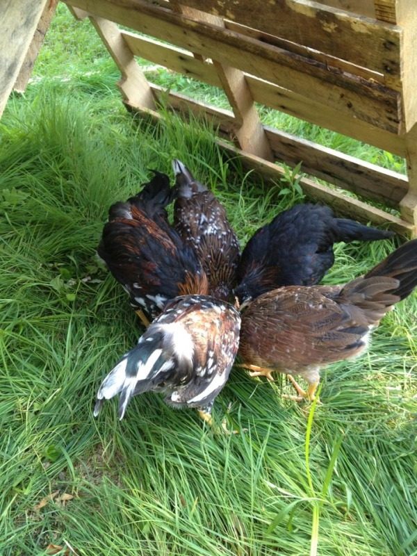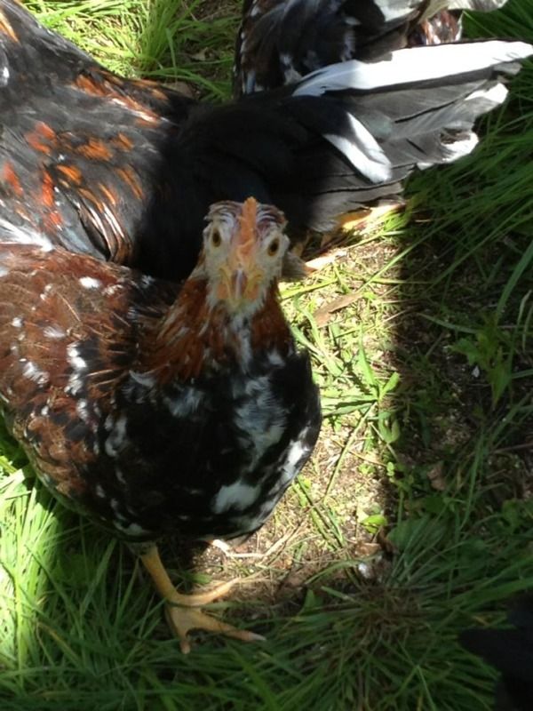 I just wanted to share some pictures of our flock. We were looking to get chickens for awhile, and a woman nearby had some Icelandics she had bought for breeding, but didn't think she had the time for them. Right now, we have 4 hens and 3 roosters, and I know we'll most likely have to re-home 2 of the roosters. They're only 11 weeks old, so right now they're getting along.