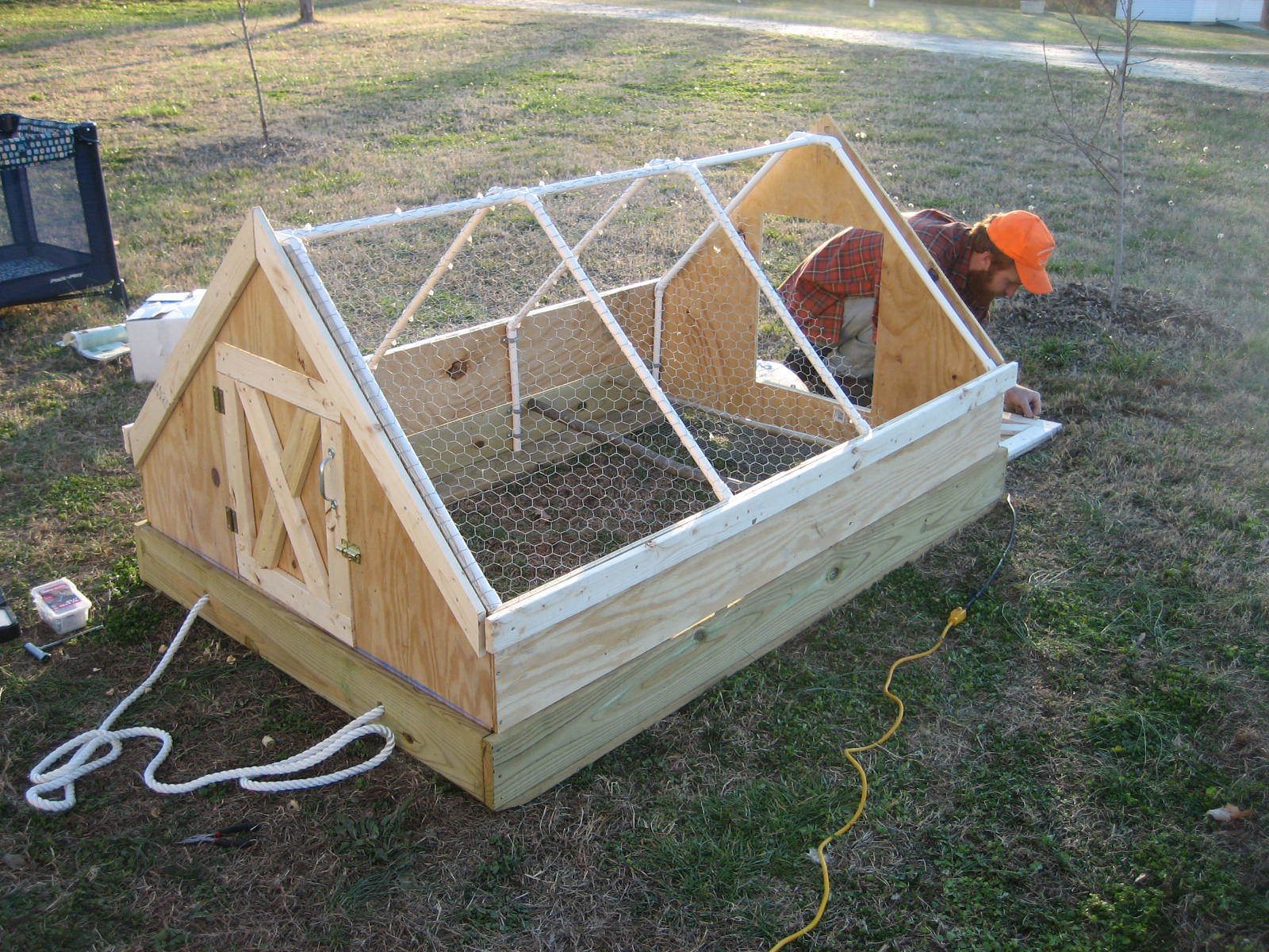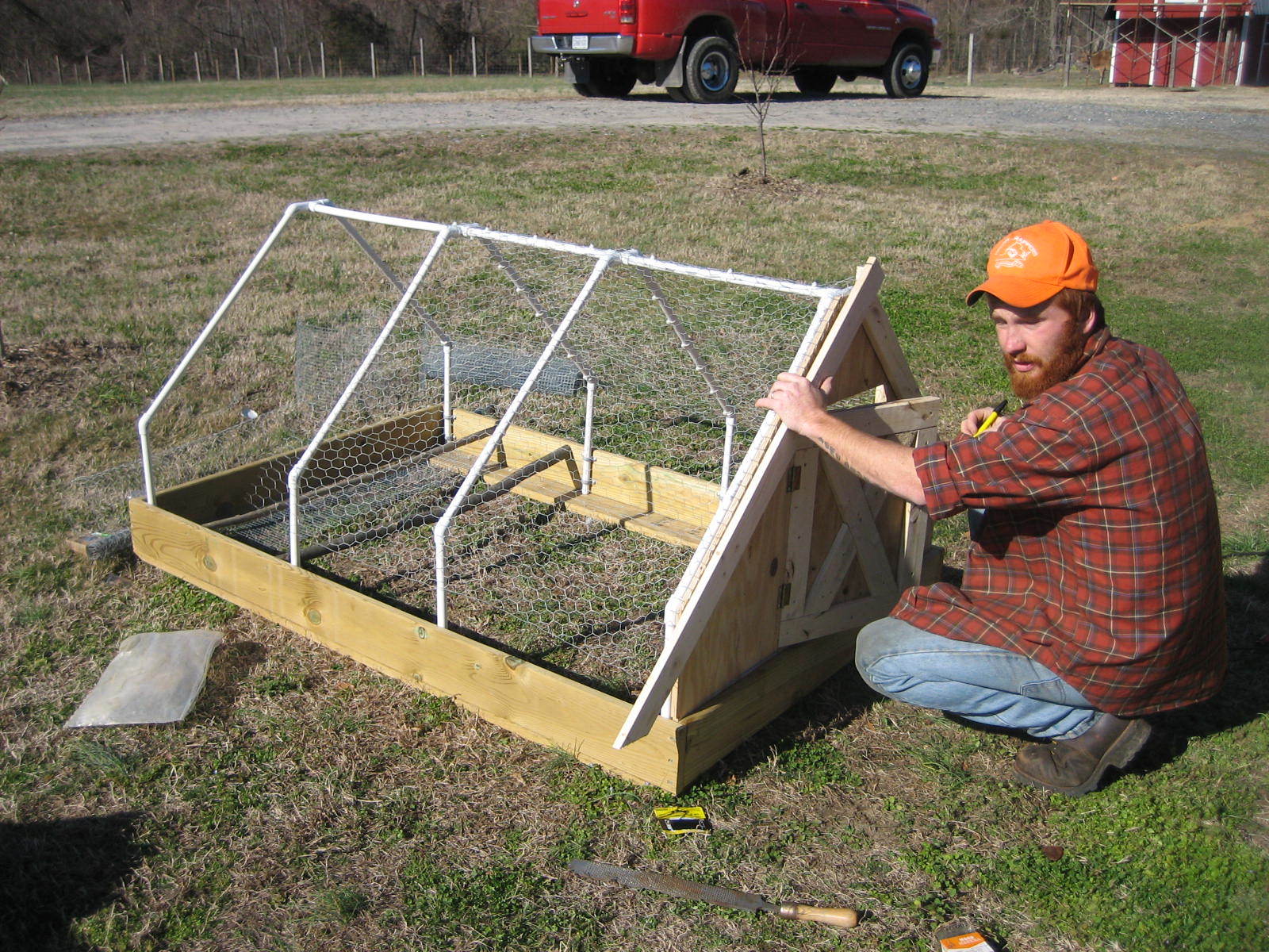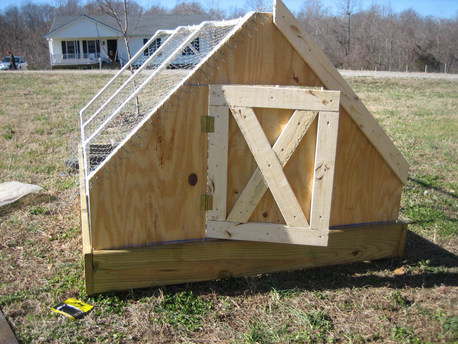 We decided to build a new chicken tractor to house some of our early December hatch. I took pictures as my husband built in case anyone wants to replicate. The whole thing is 4x6.