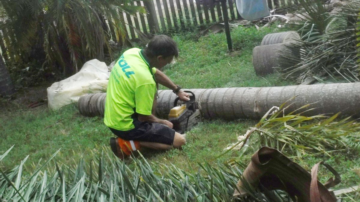 Anyways, the tree lopper was brought in to remove 3 very large palms which were close to the house and interfering with the installation of the new guttering. After I got the pictures from him in an e.mail, I was quickly on the phone to to ask what had been done with the off cuts and he said that the majority of them had been taken away but he had kept 5 or 6 because he knew I would have a use for them! He knows me so well