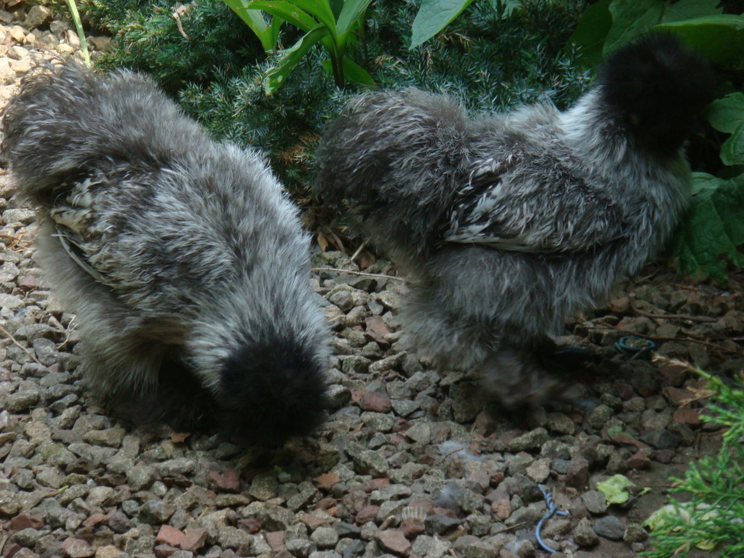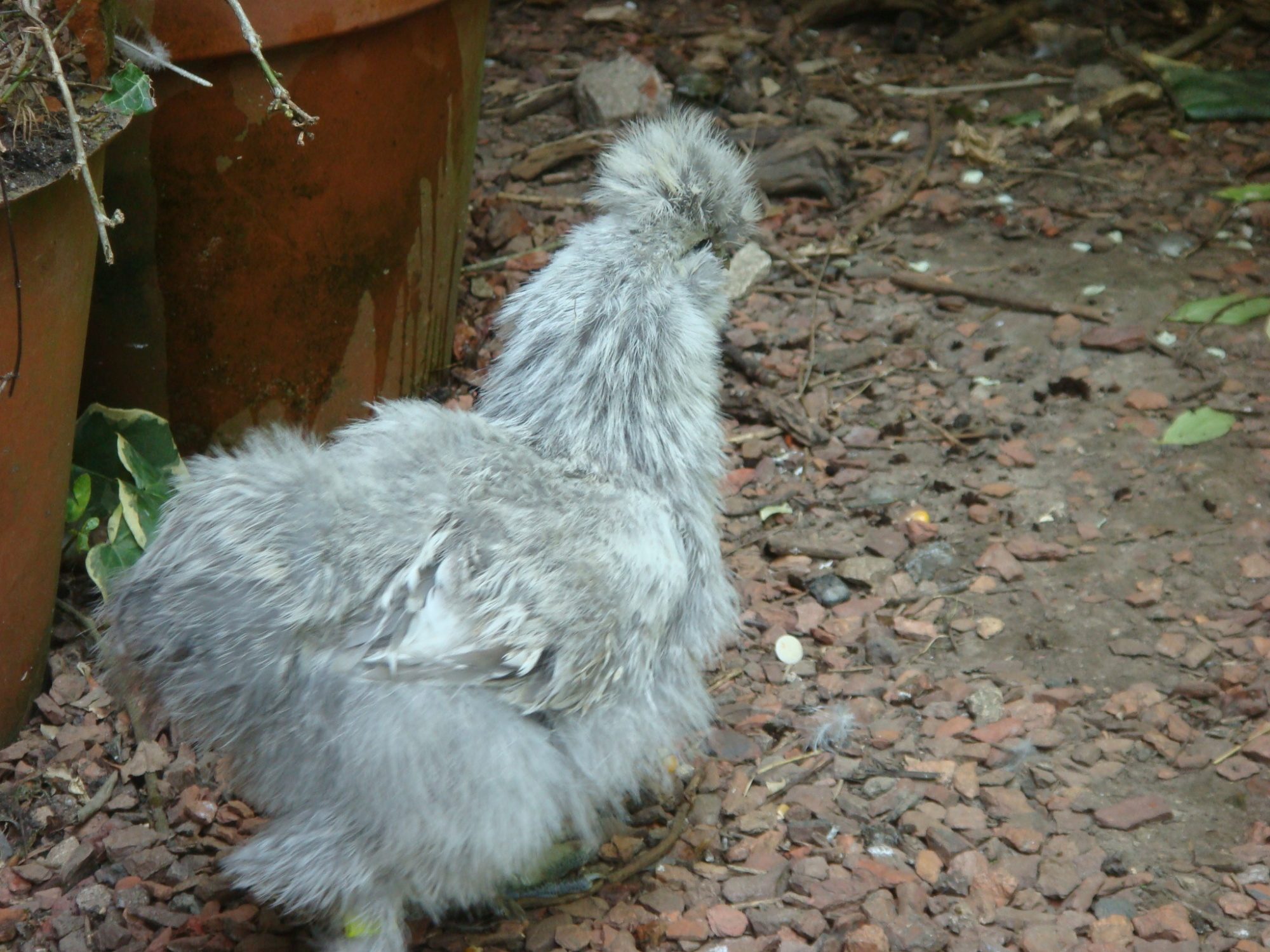 Young hen +- 2 1/2 months old Blue Silver Columbian morehead (comes close to Splash Silver Partridge in phenotype).